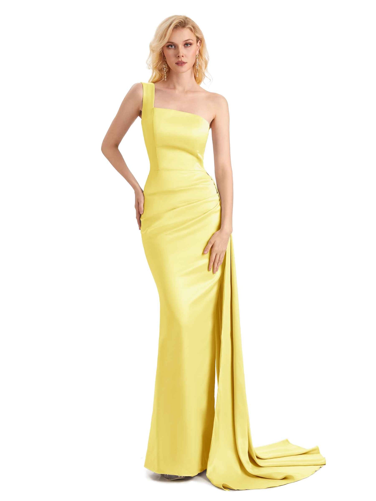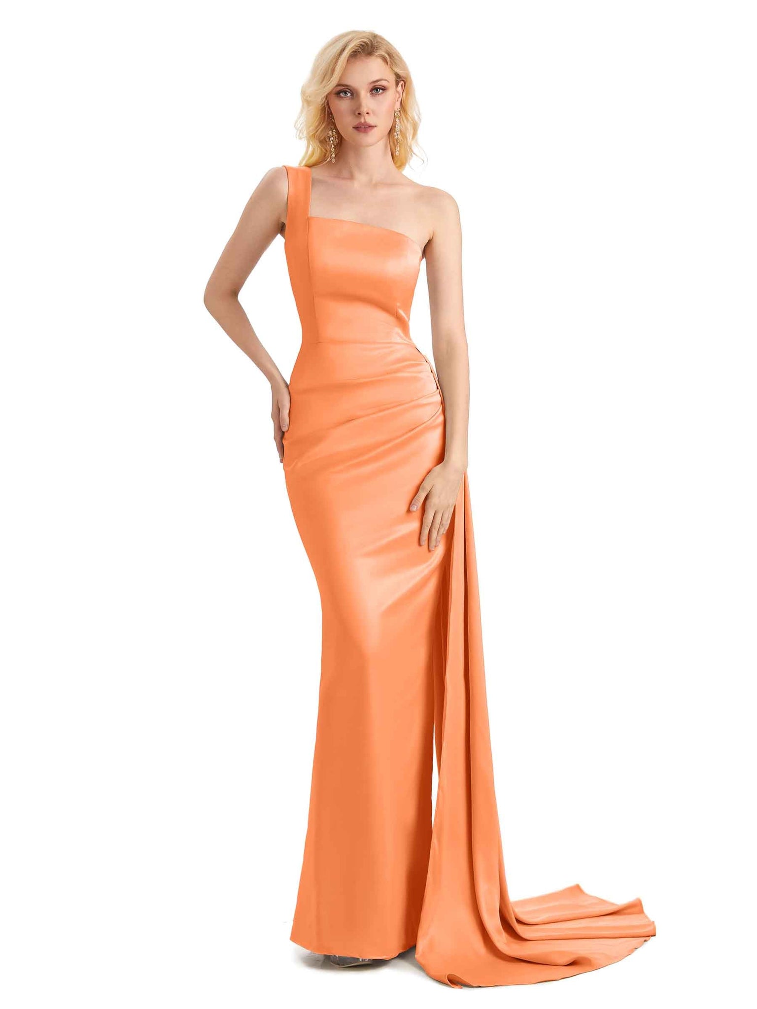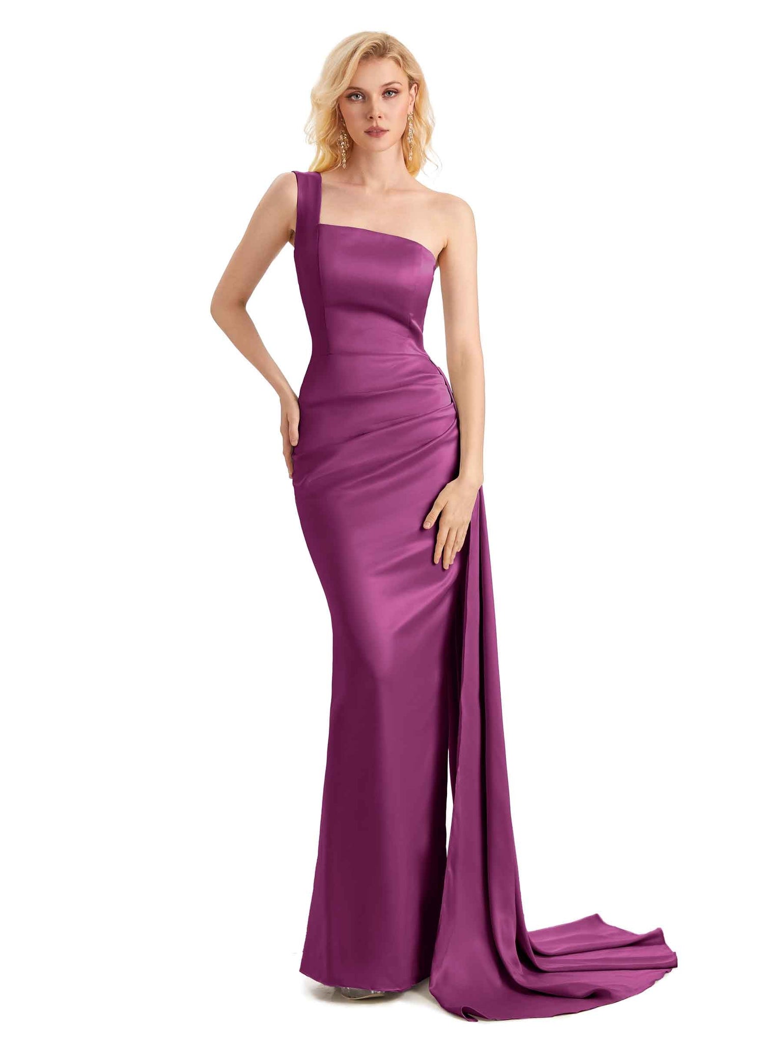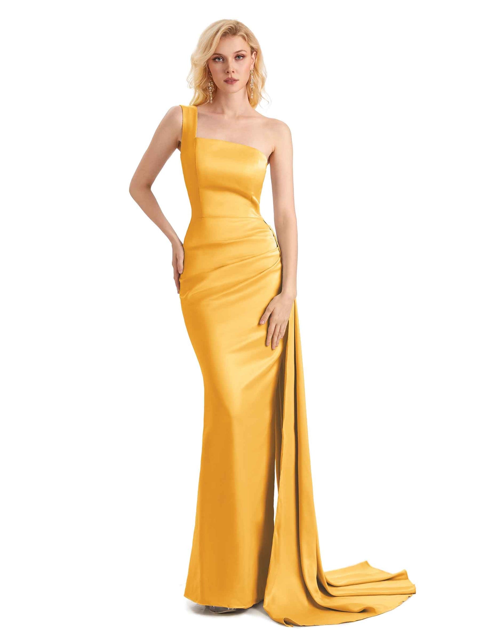 Elegant One Shoulder Soft Satin Mermaid Unique Long Bridesmaid Dresses Online