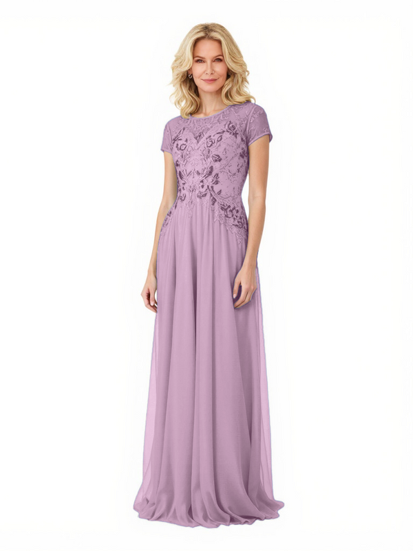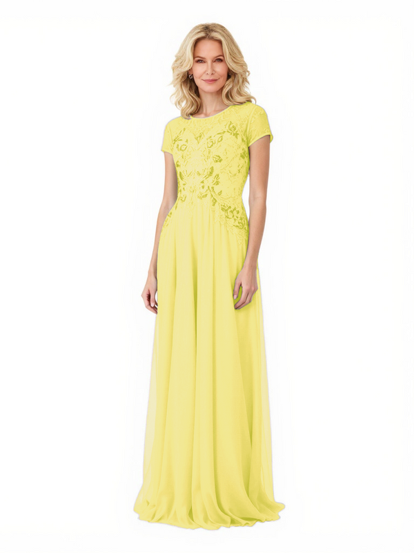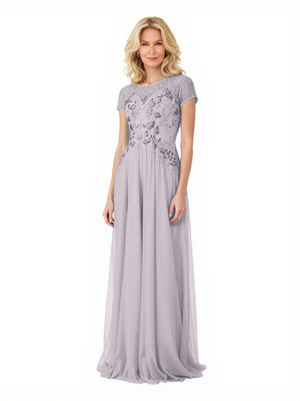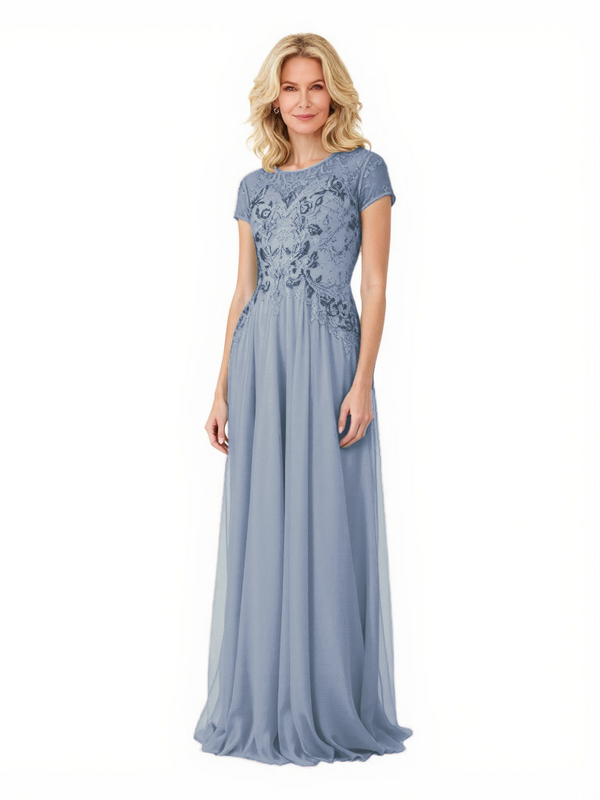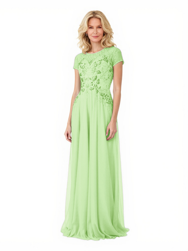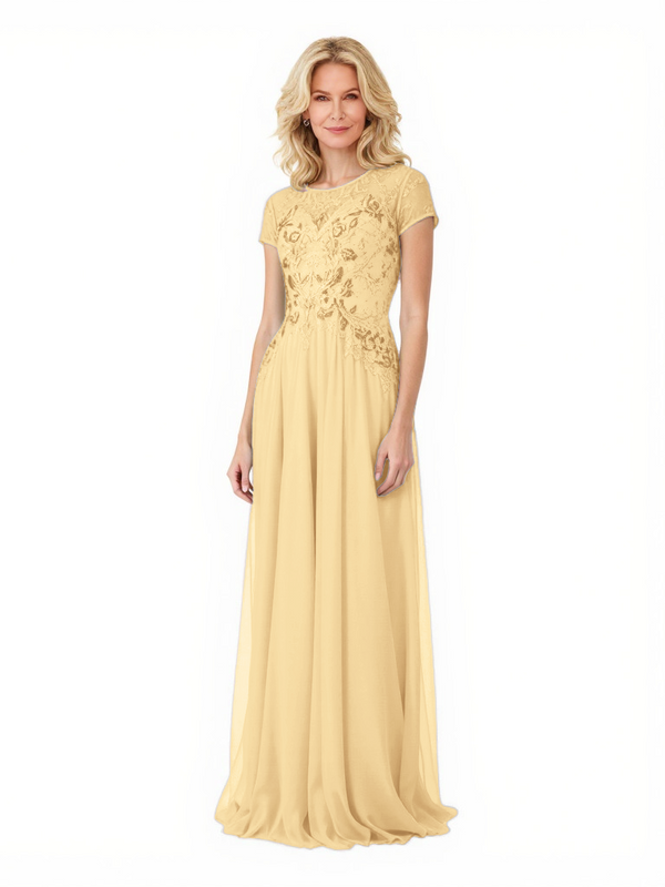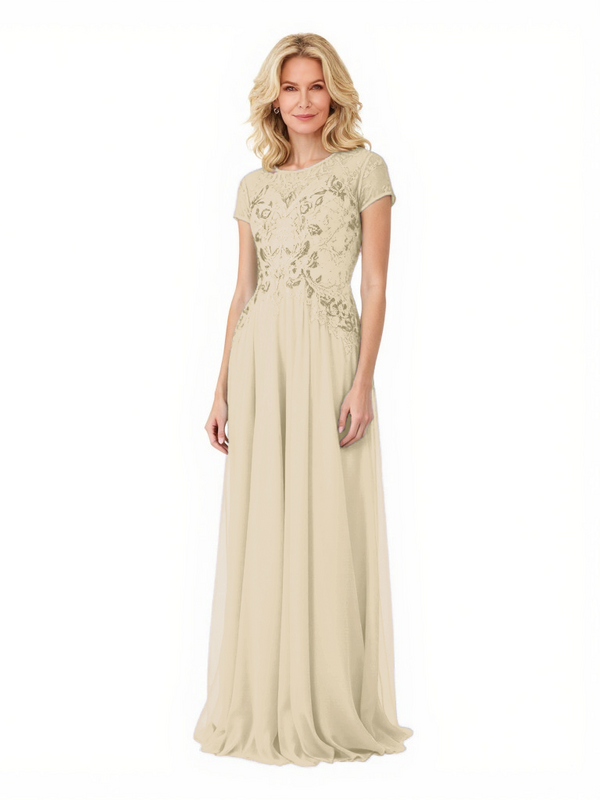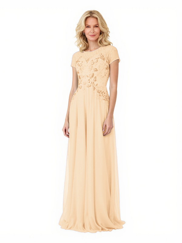 Elegant Scoop Cap Sleeves Lace Chiffon A-line Mother of The Bride Dresses