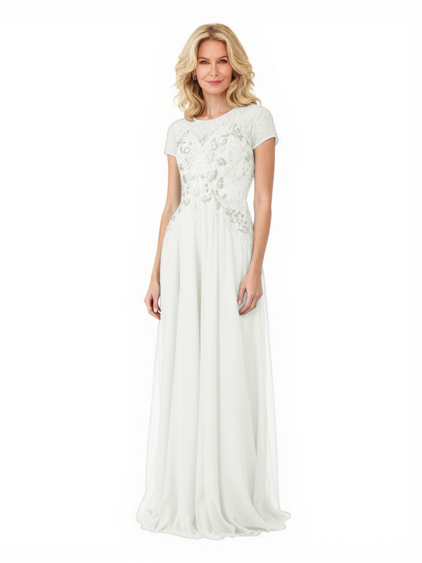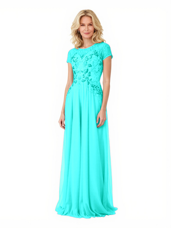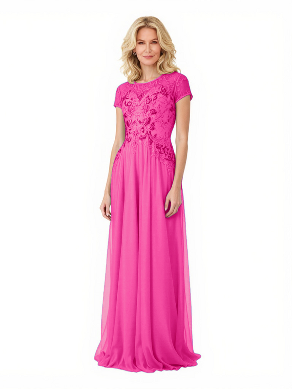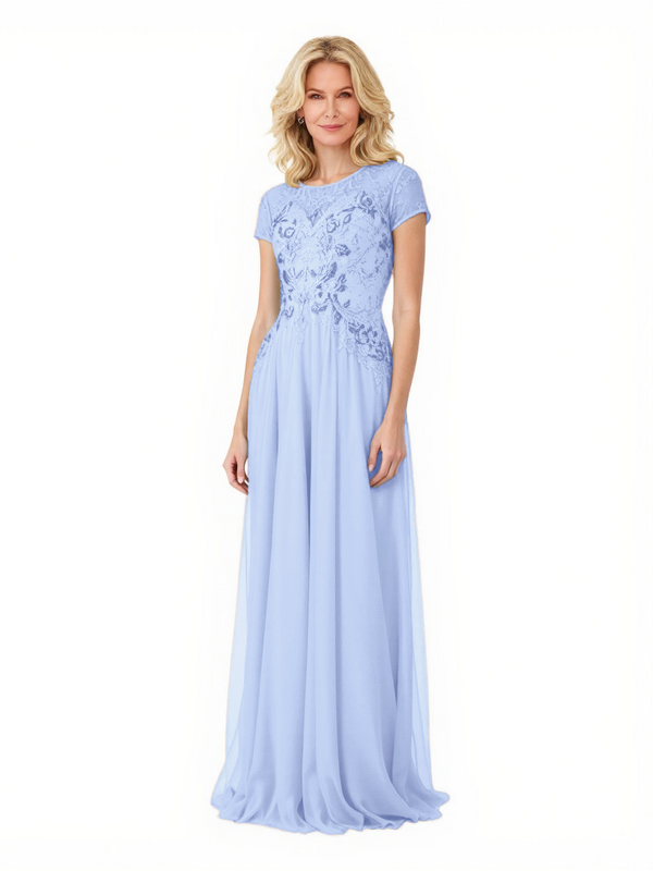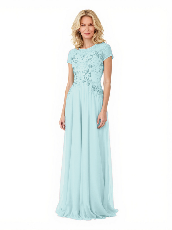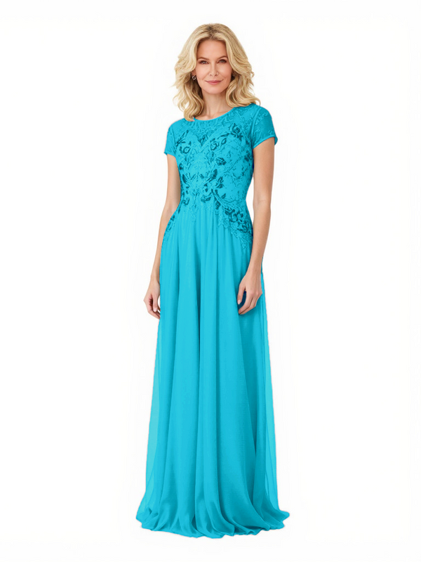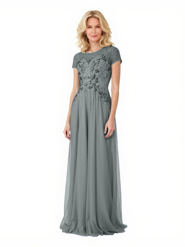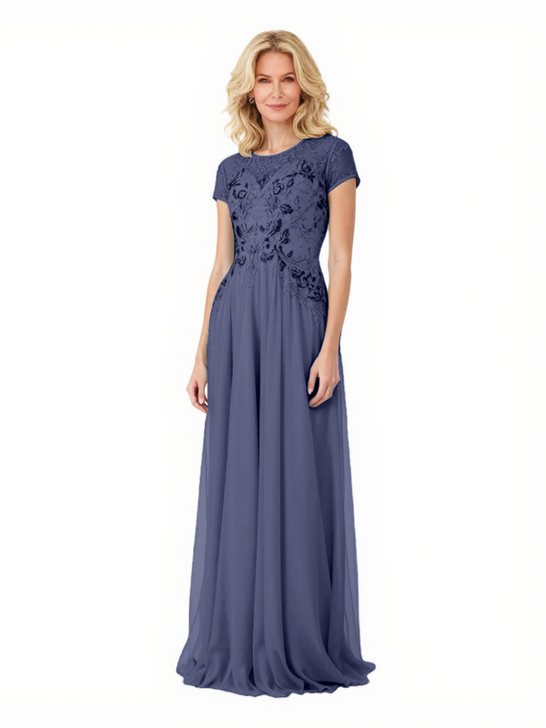 Elegant Scoop Cap Sleeves Lace Chiffon A-line Mother of The Bride Dresses