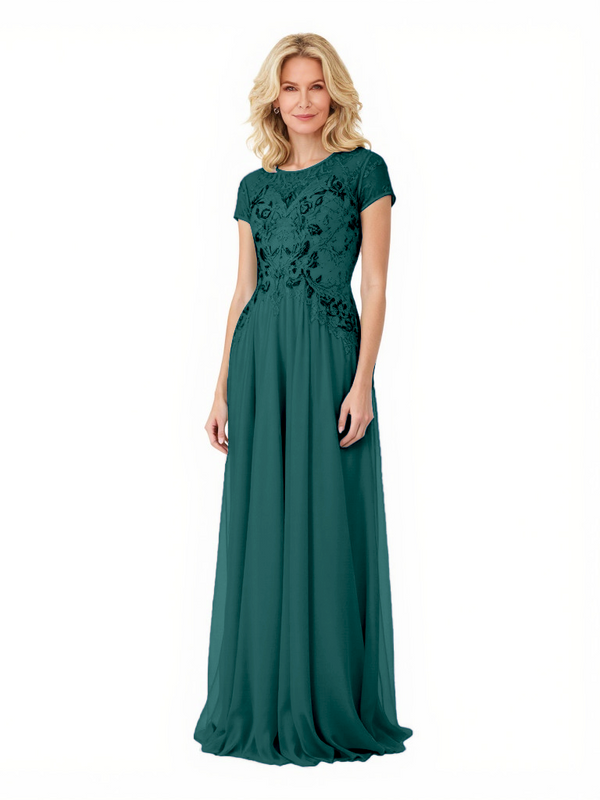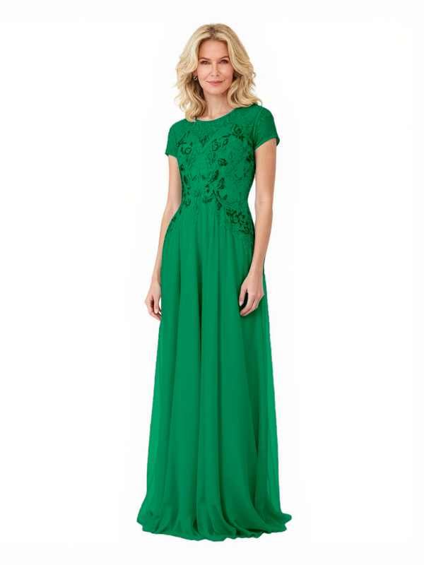 Elegant Lace Short Sleeves Chiffon V-neck Floor-length Mother of The Bride DressesElegant Lace Short Sleeves Chiffon V-neck Floor-length Mother of The Bride Dresses