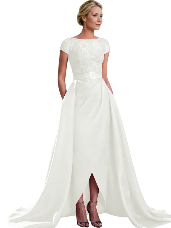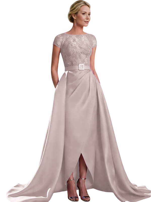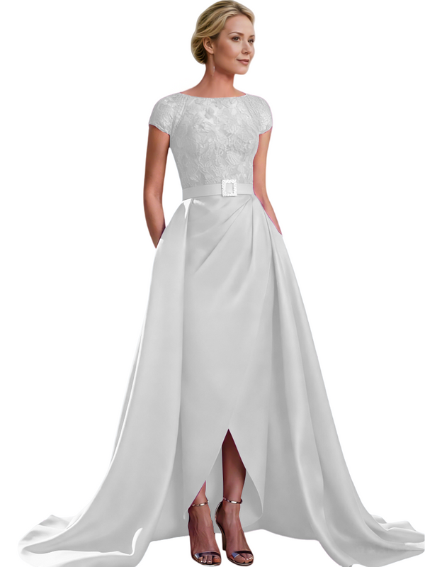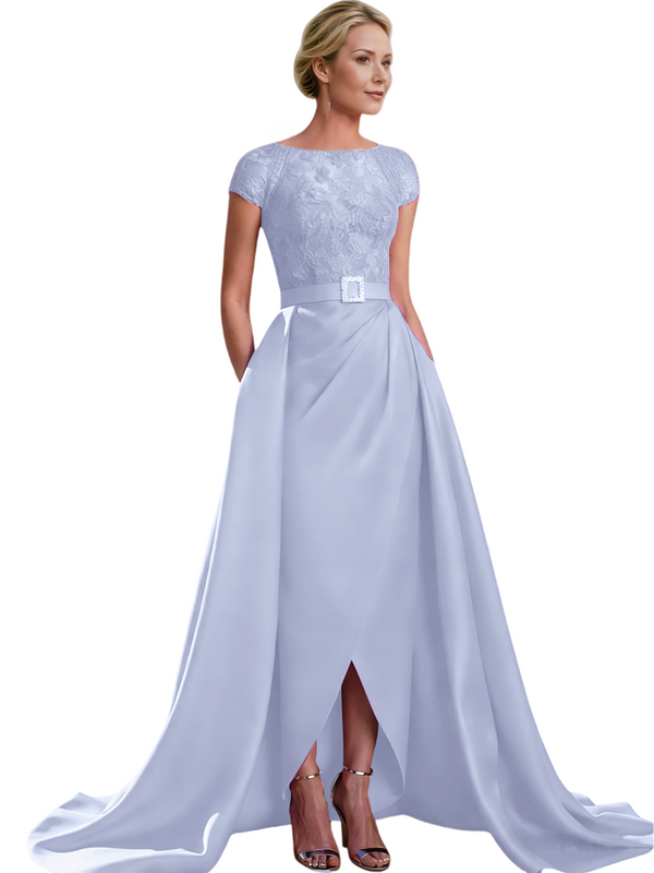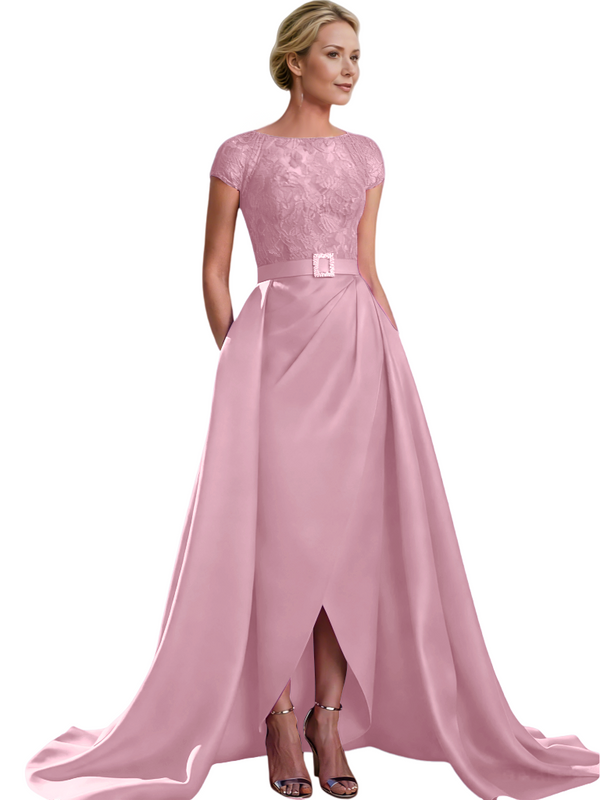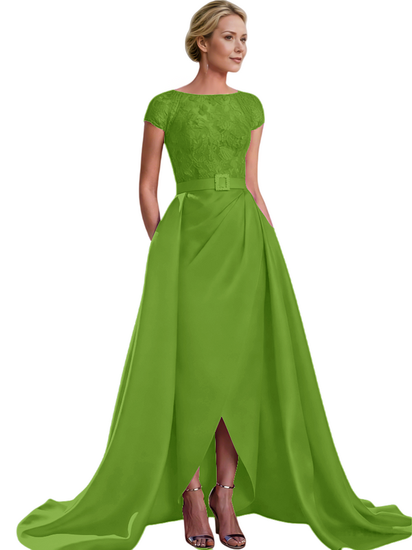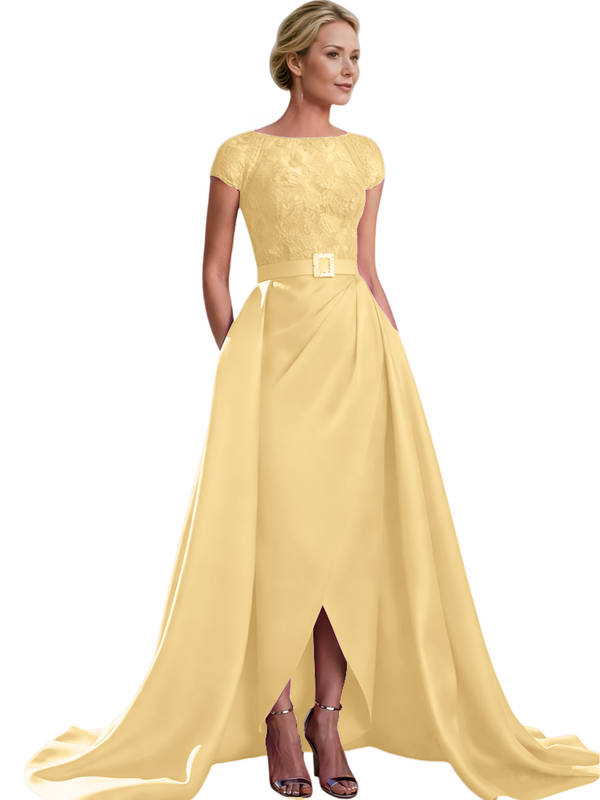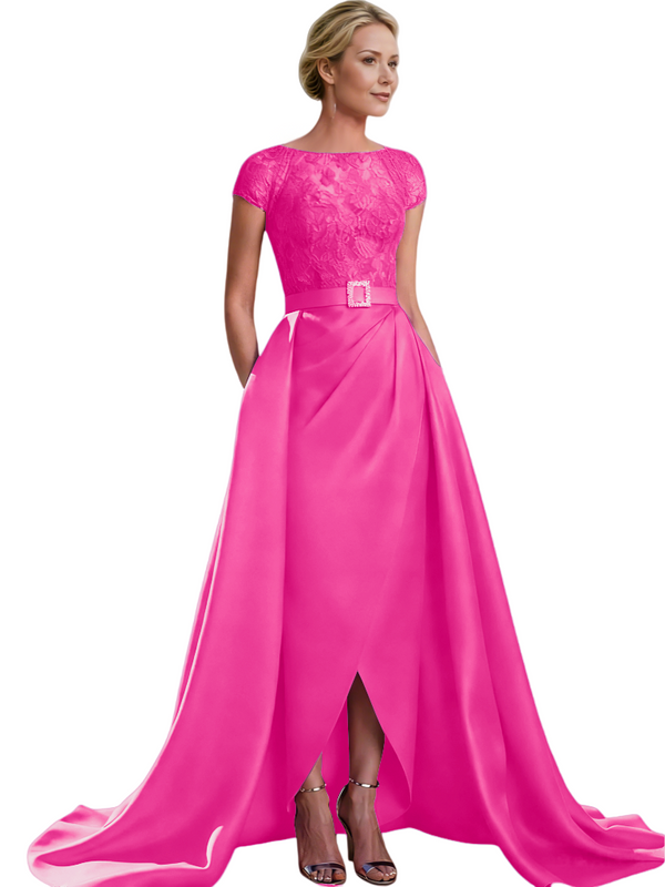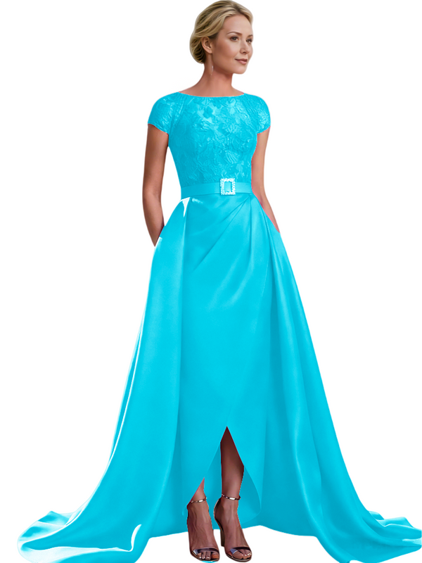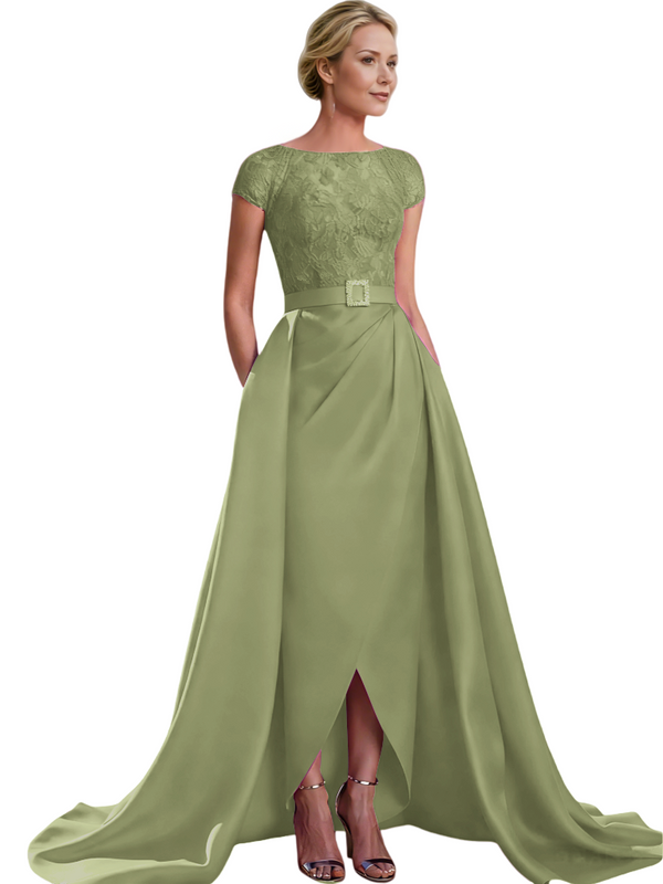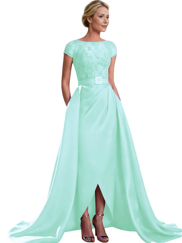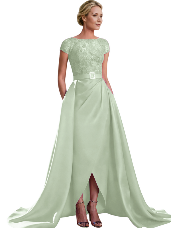 Elegant Cap Sleeves Jewel Lace And Satin For Mother Of The Bride With Train $135.99