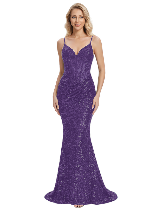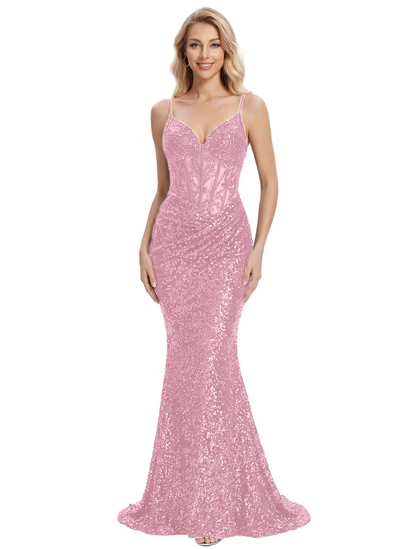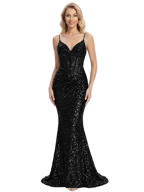ChicSew Sparkly Sequins Spaghetti Straps Seqin Mermaid Prom Dress Formal Gown
