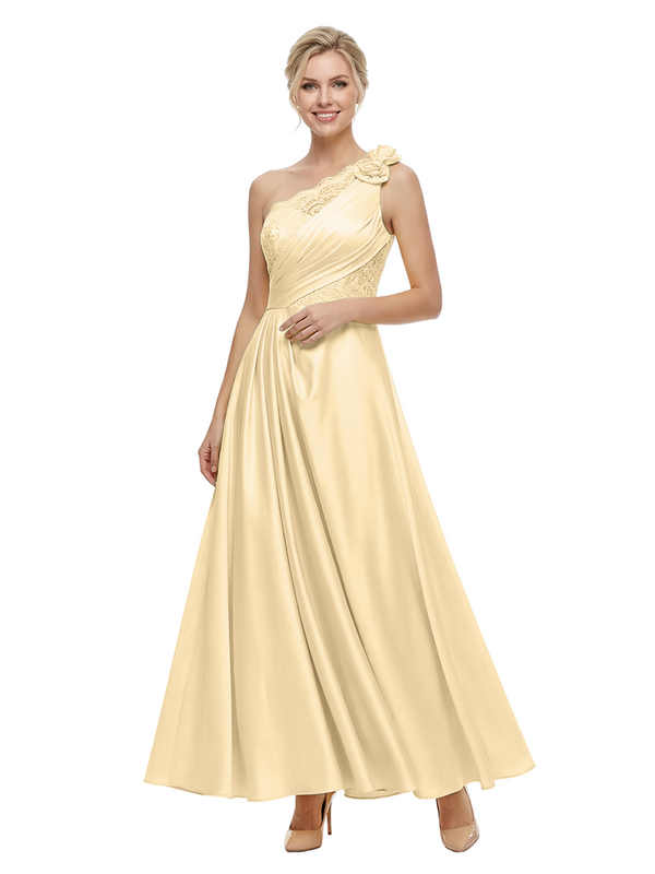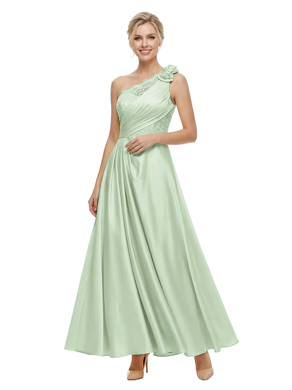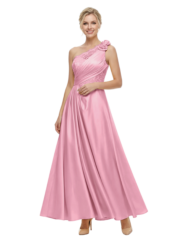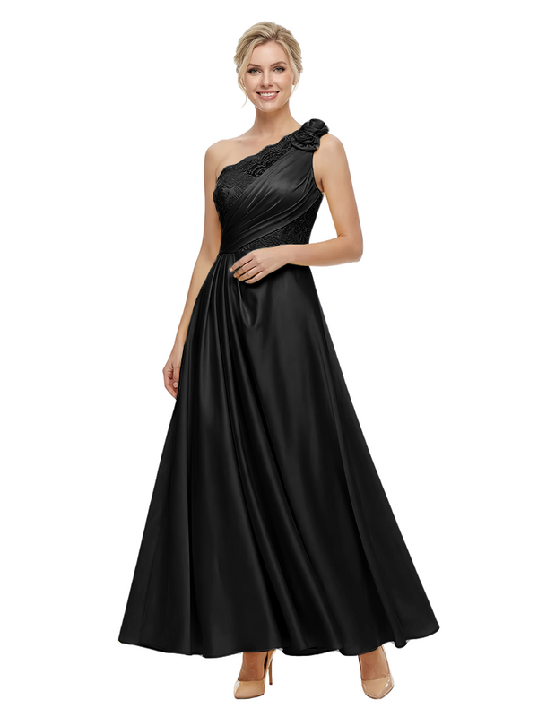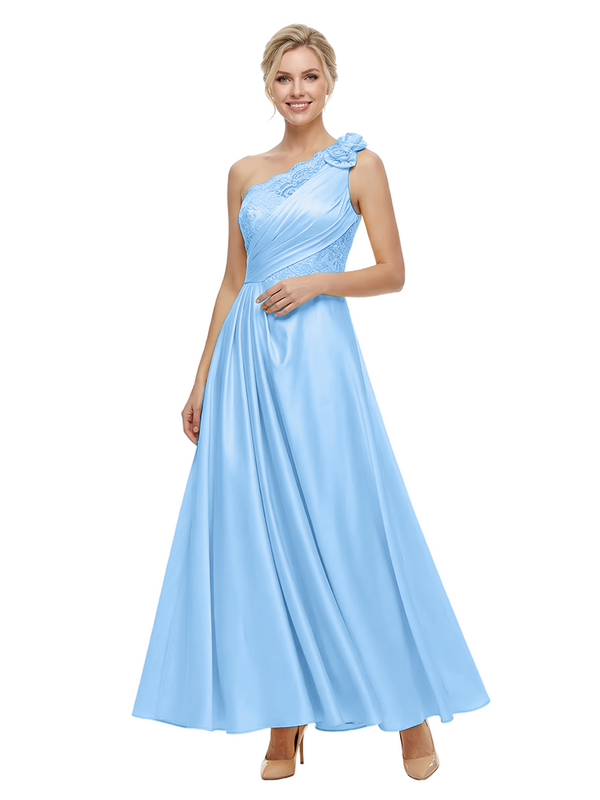 ChicSew Fancy One Shoulder Satin Lace Applique Prom Gown Pretty Sleeveless A-Line