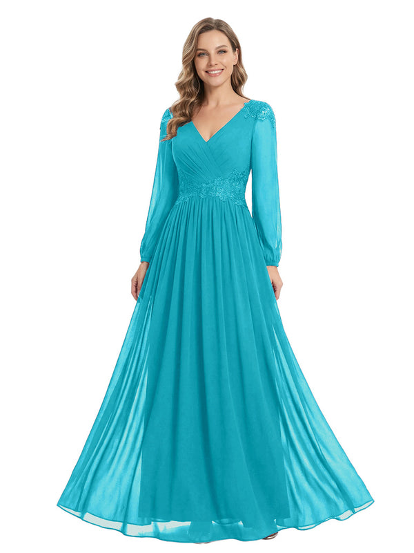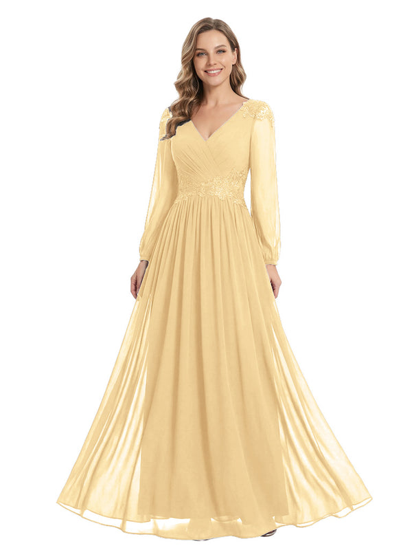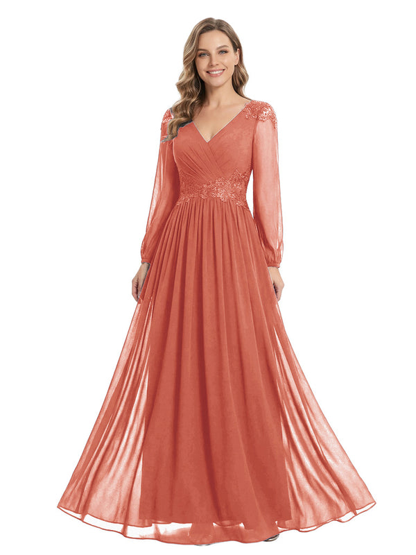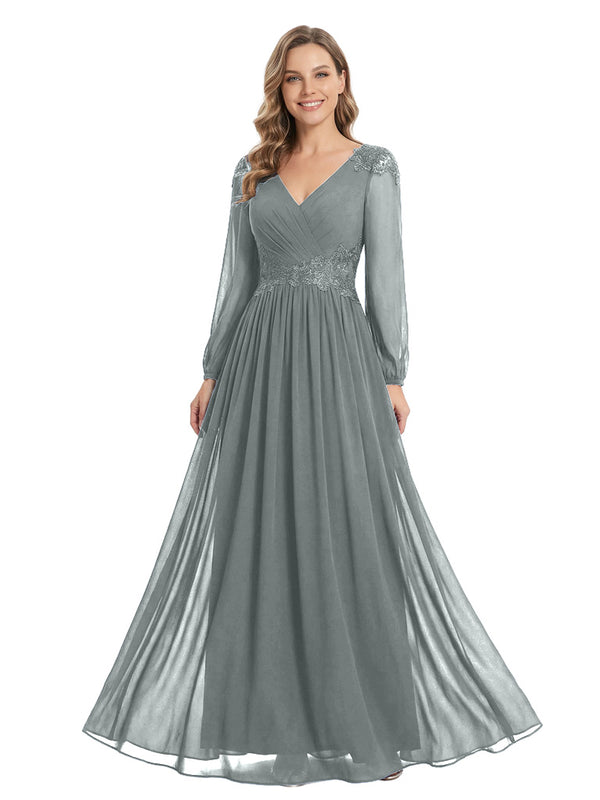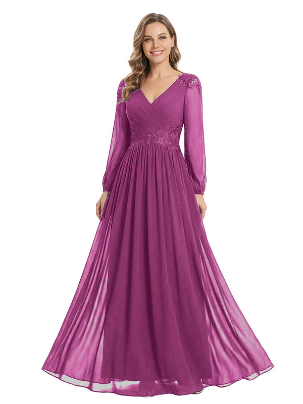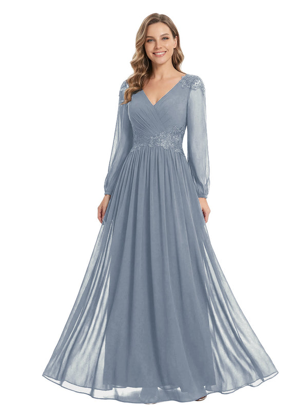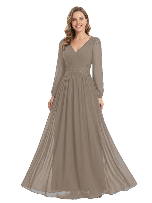 Beautiful Mother Of The Bride Dresses V-Neck Long Sleeves A-Line Lace Appliques