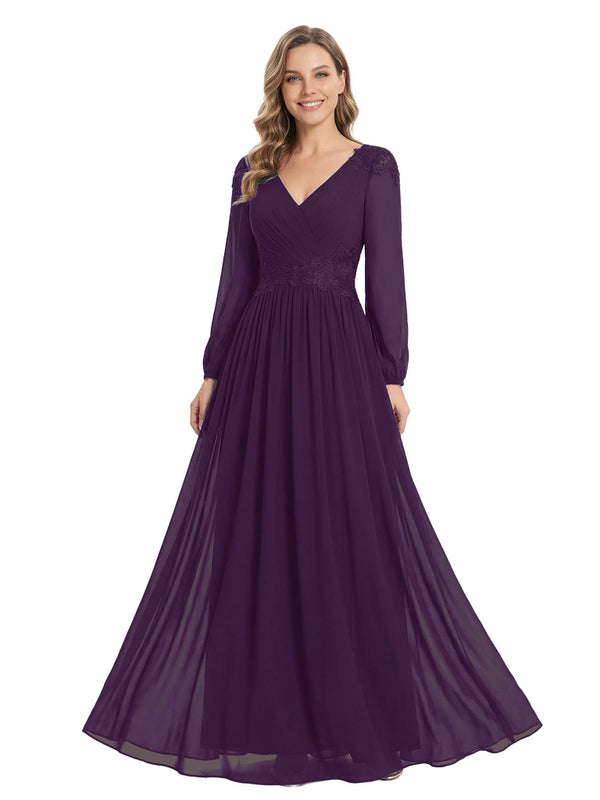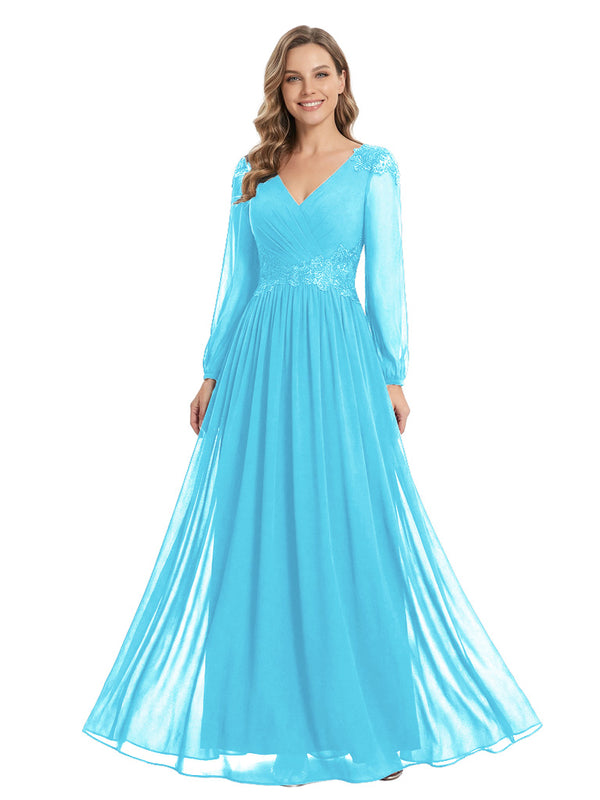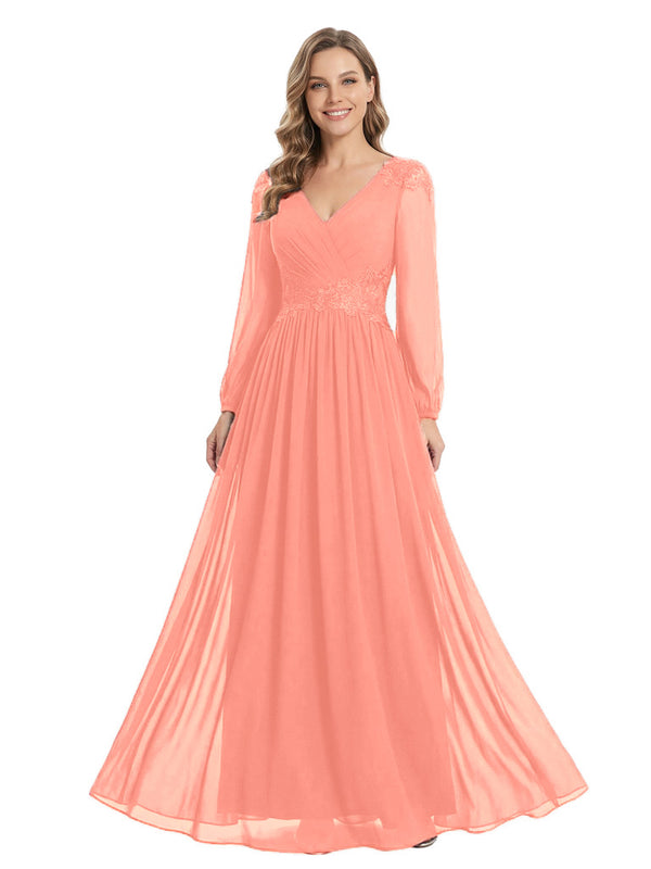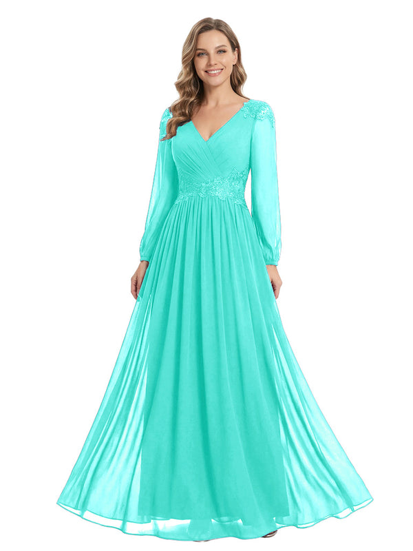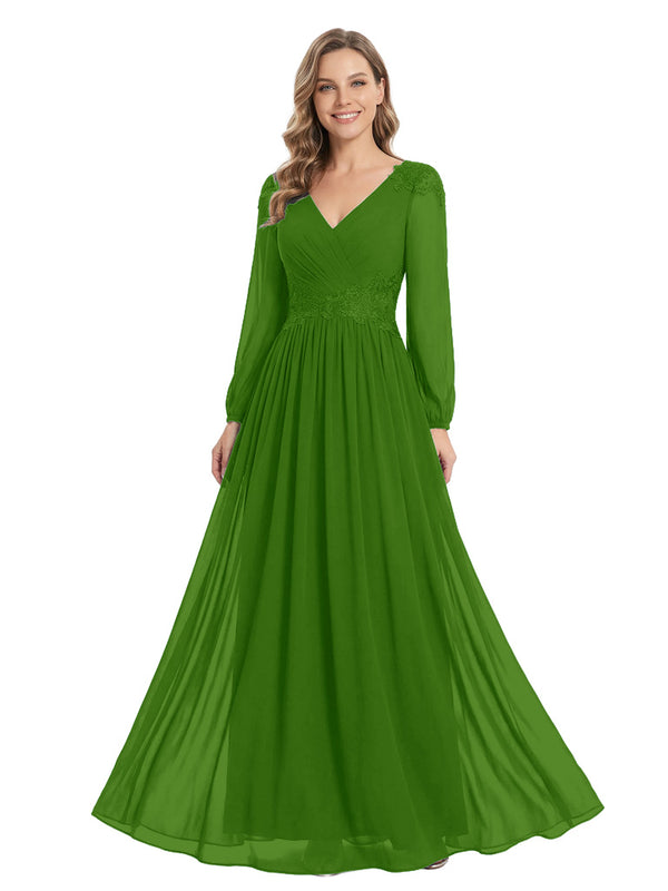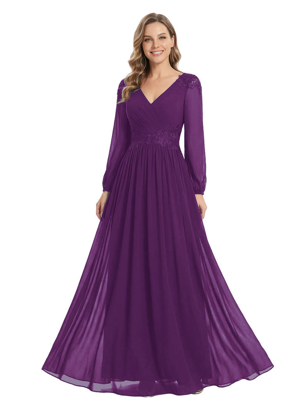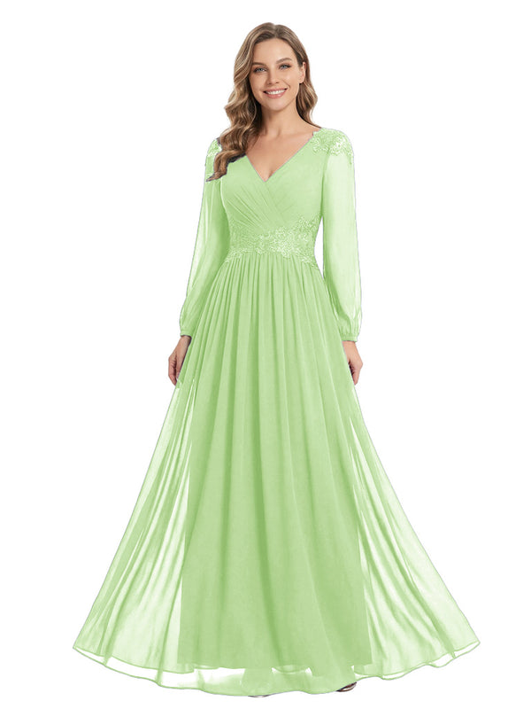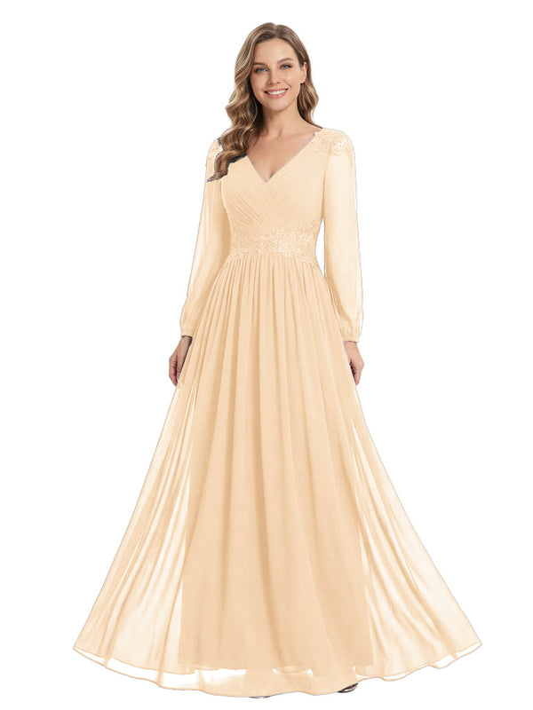 Beautiful Mother Of The Bride Dresses V-Neck Long Sleeves A-Line Lace Appliques