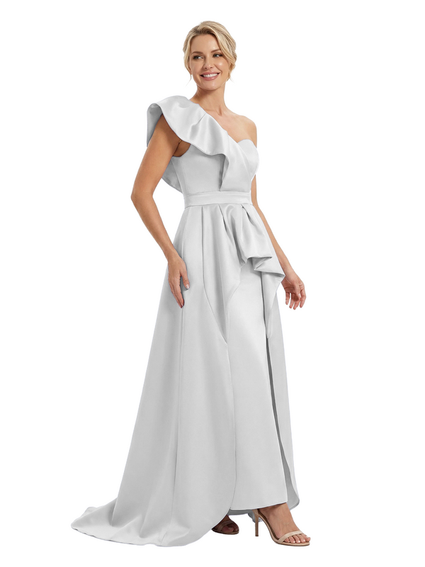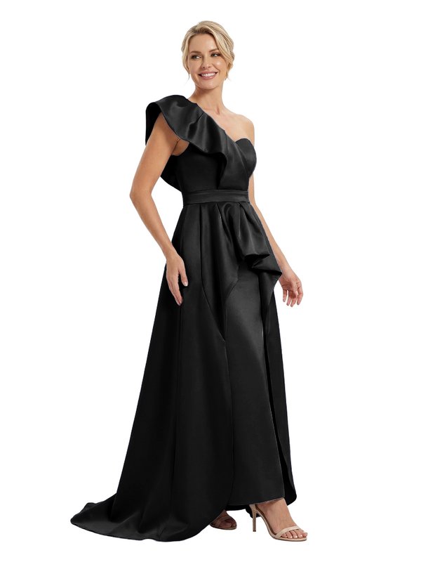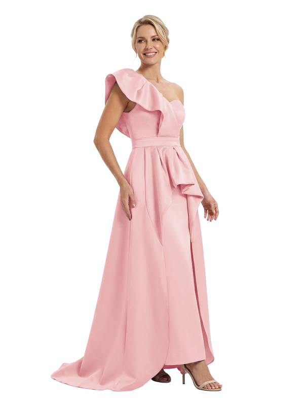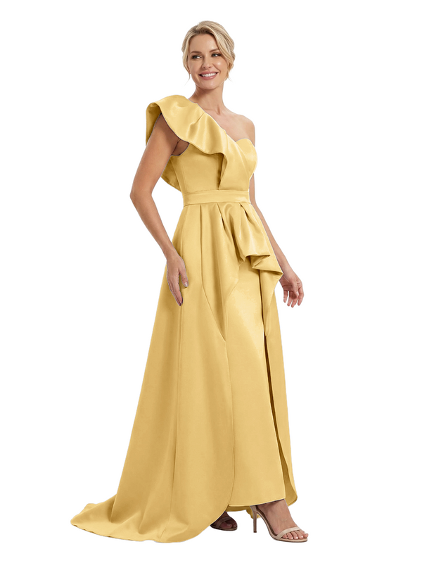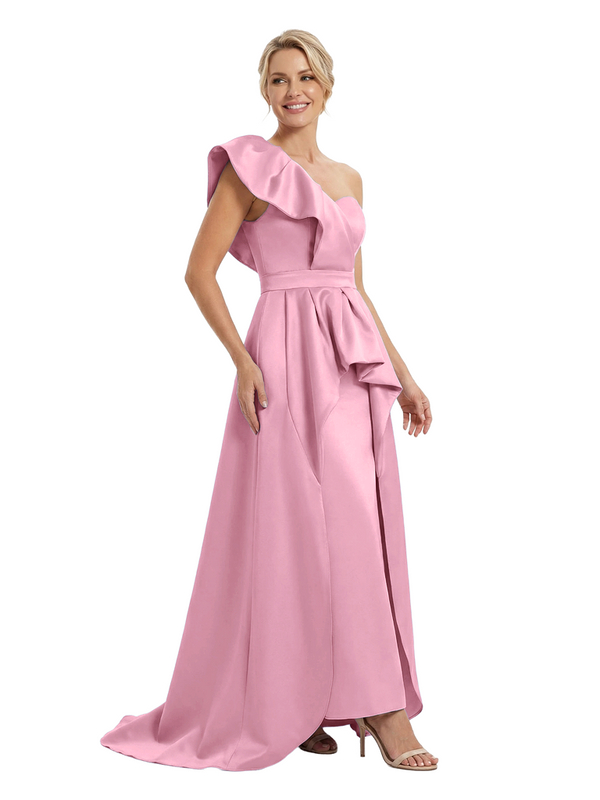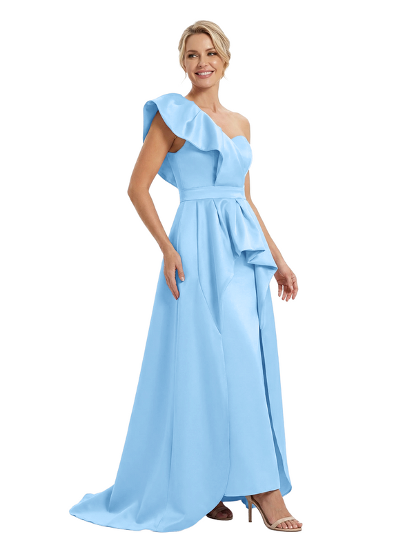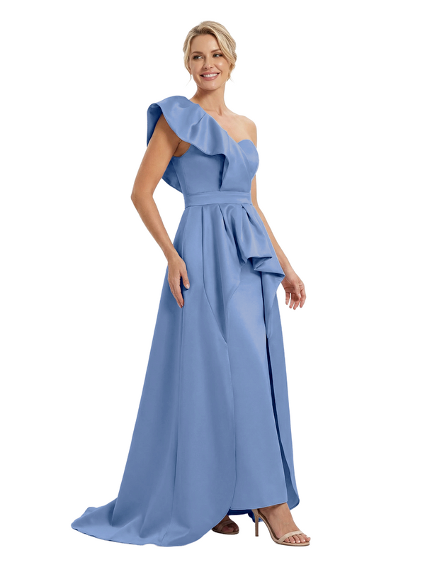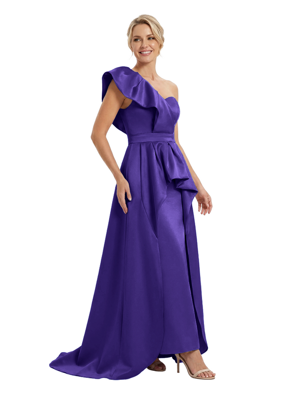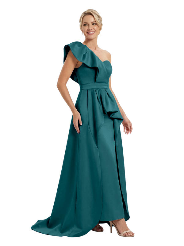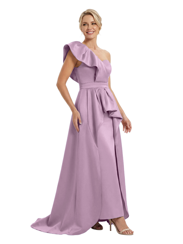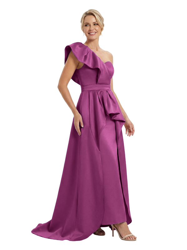Chicsew Elegant One Shoulder Ruffle Satin A-Line Mother of The Bride Dresses
