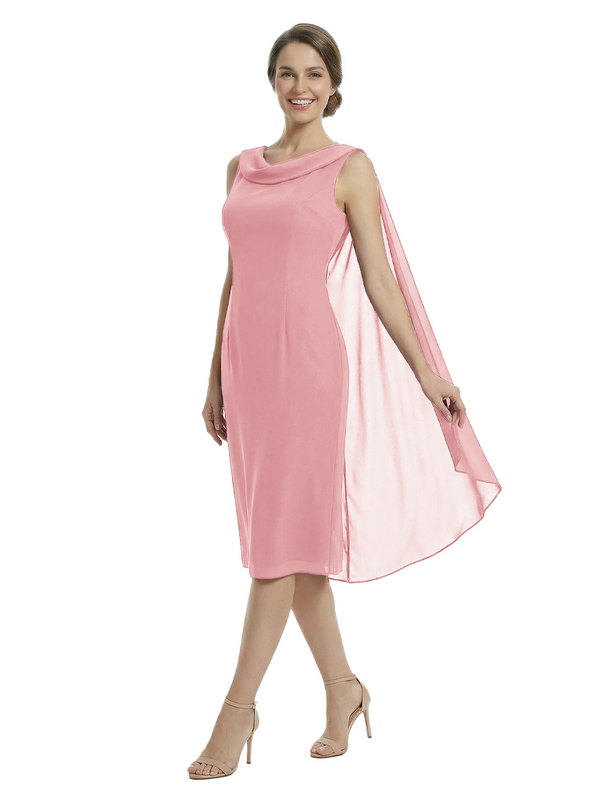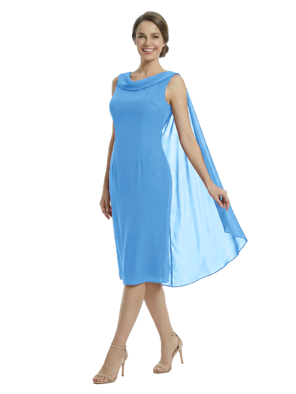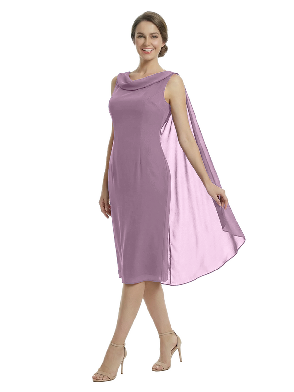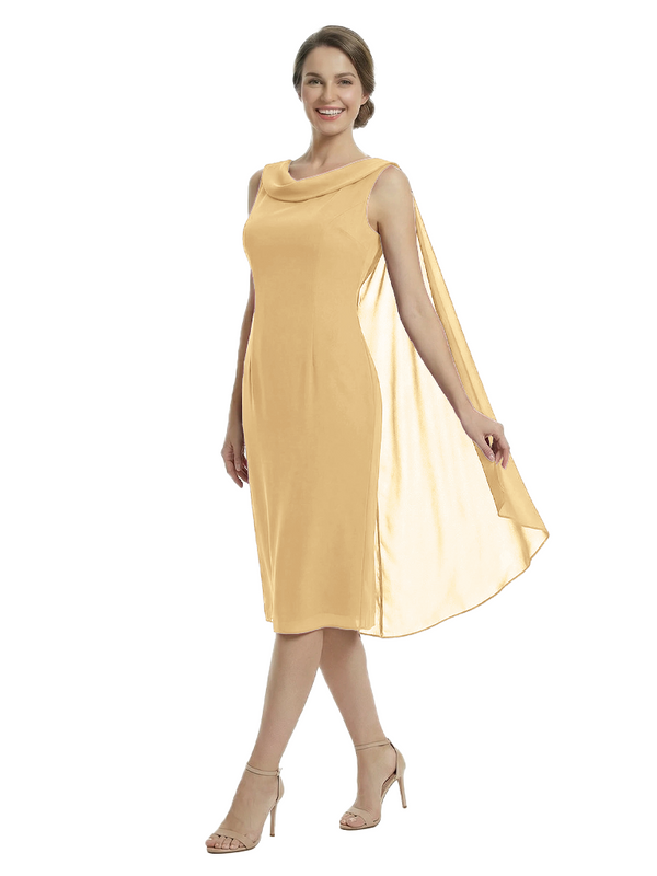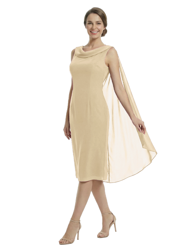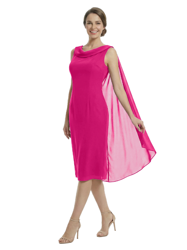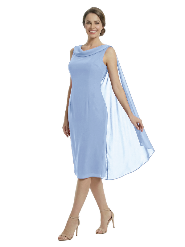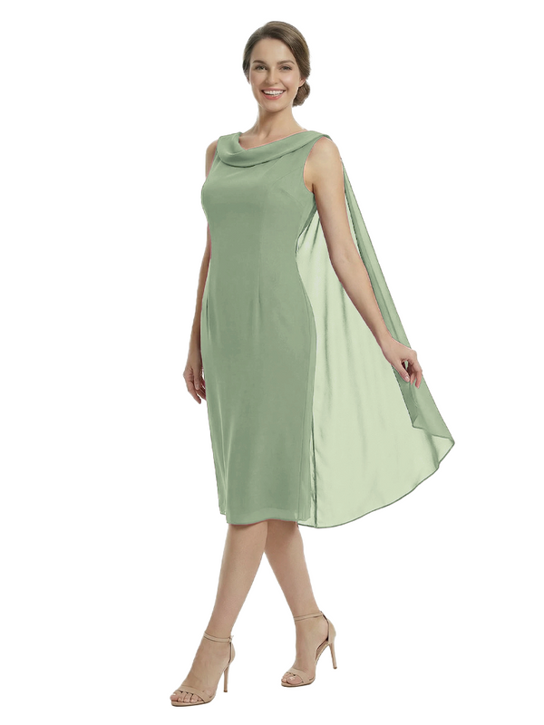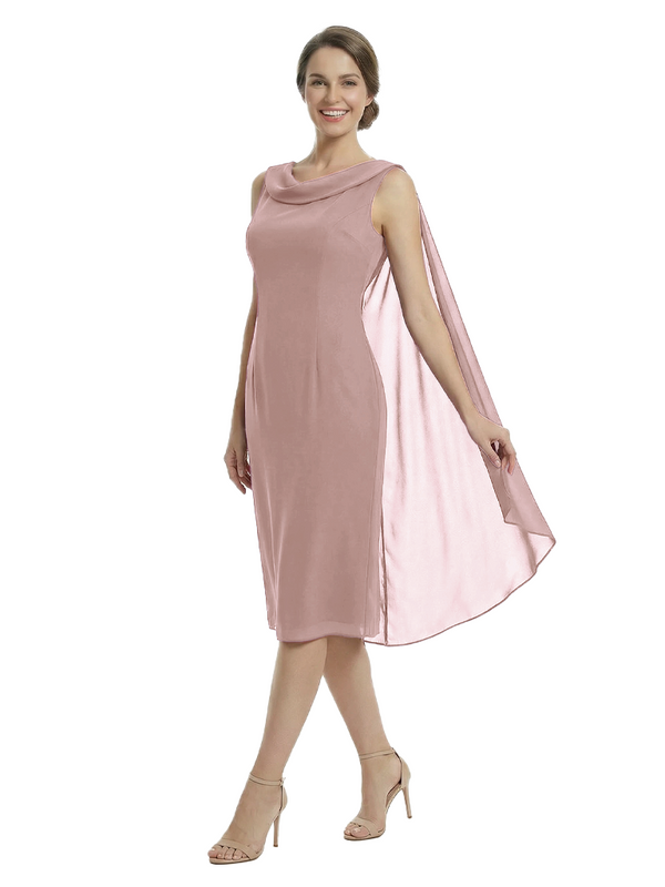 Chicsew Mother of The Groom Dresses Sleeveless Cowl Chiffon Capelet Midi Dress Formal Bridal Party Attire