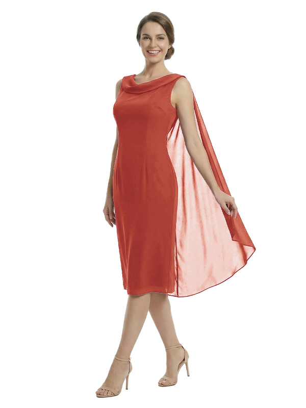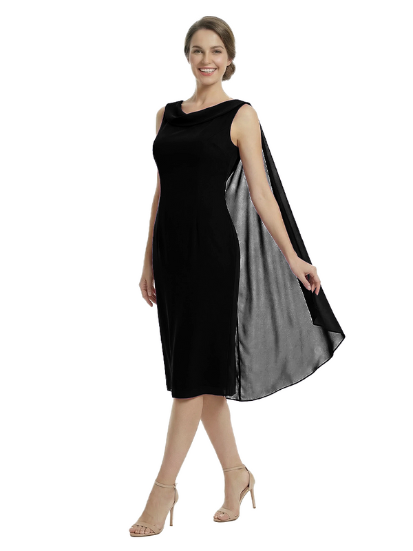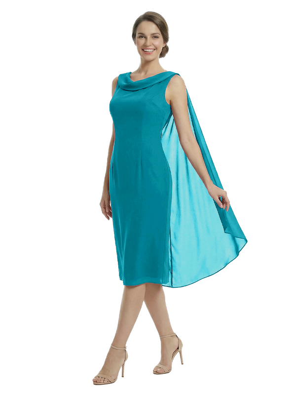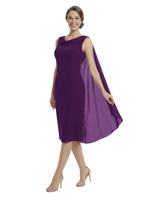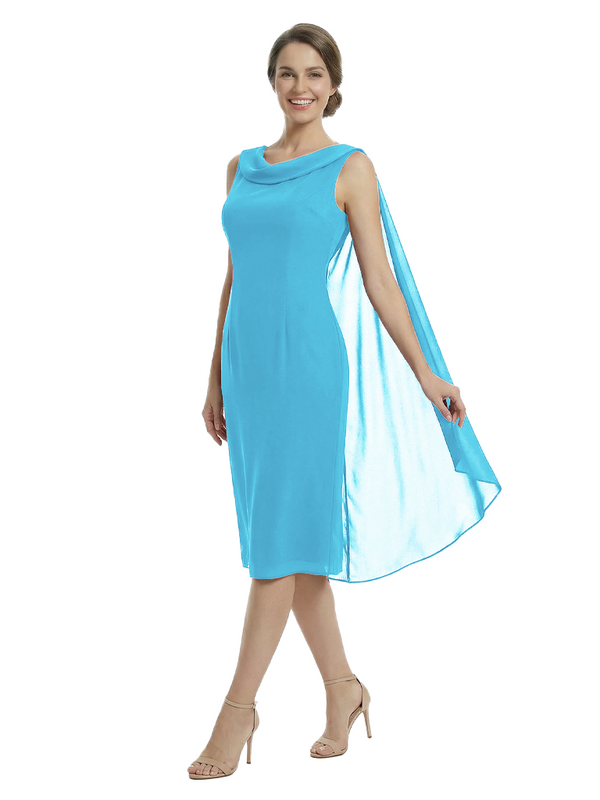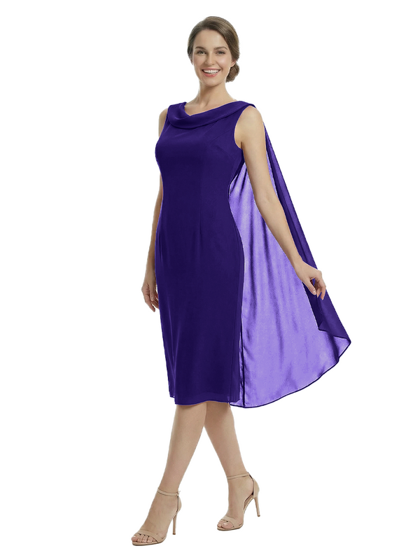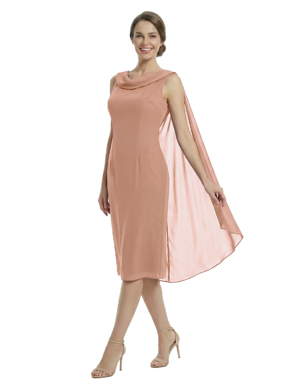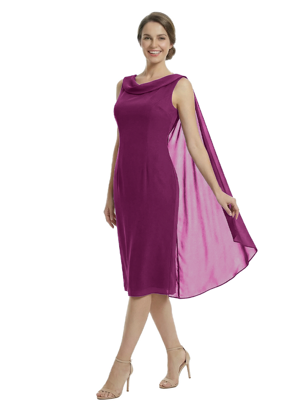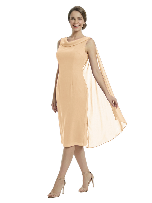 Chicsew Mother of The Groom Dresses Sleeveless Cowl Chiffon Capelet Midi Dress Formal Bridal Party Attire