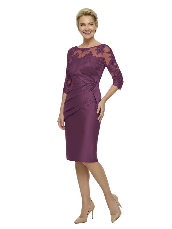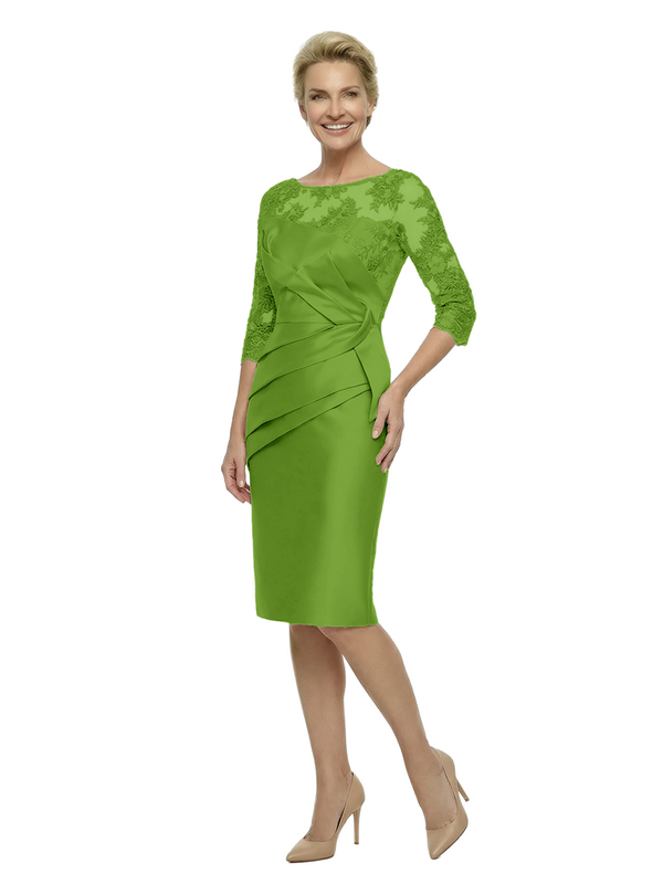 Elegant Lace 3/4 Sleeves Ruched Knee-Length Satin Mother Of The Bride Dresses