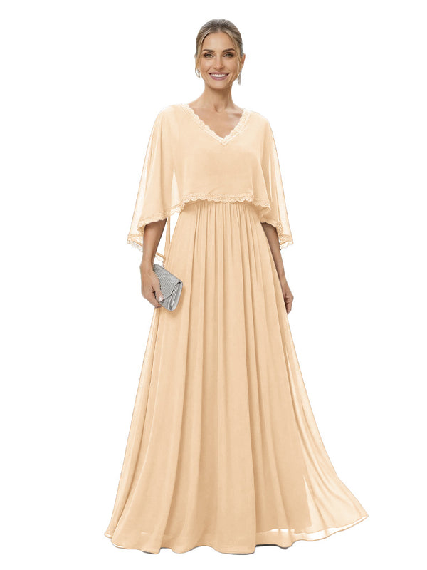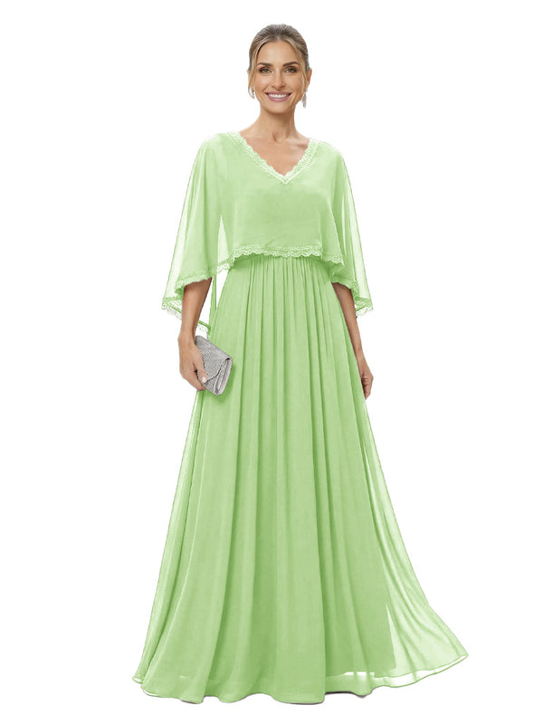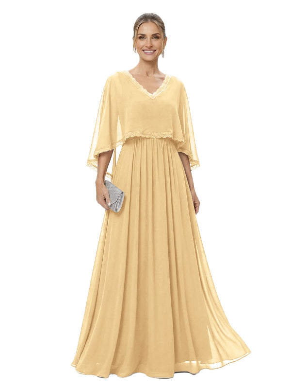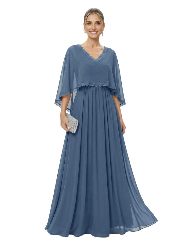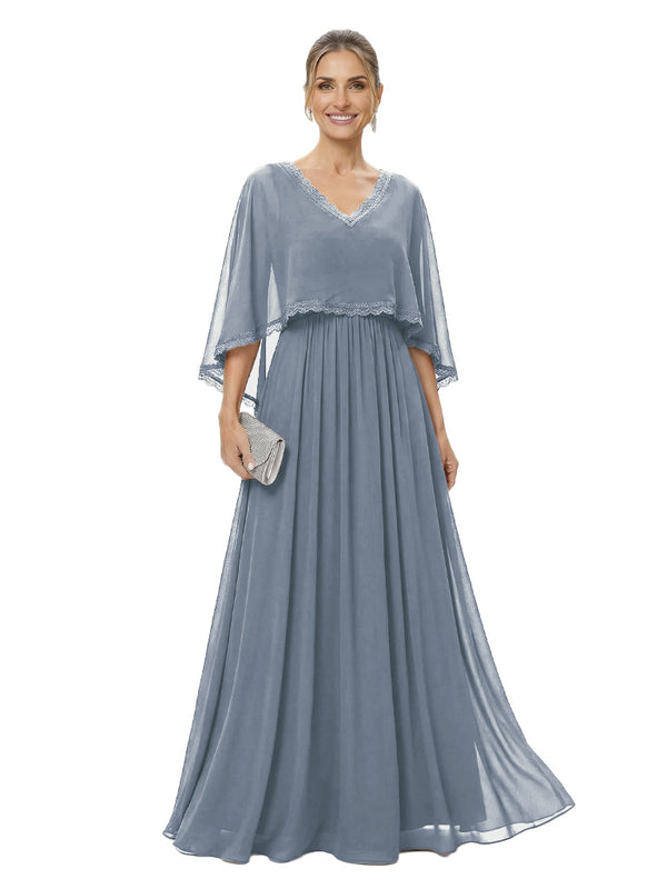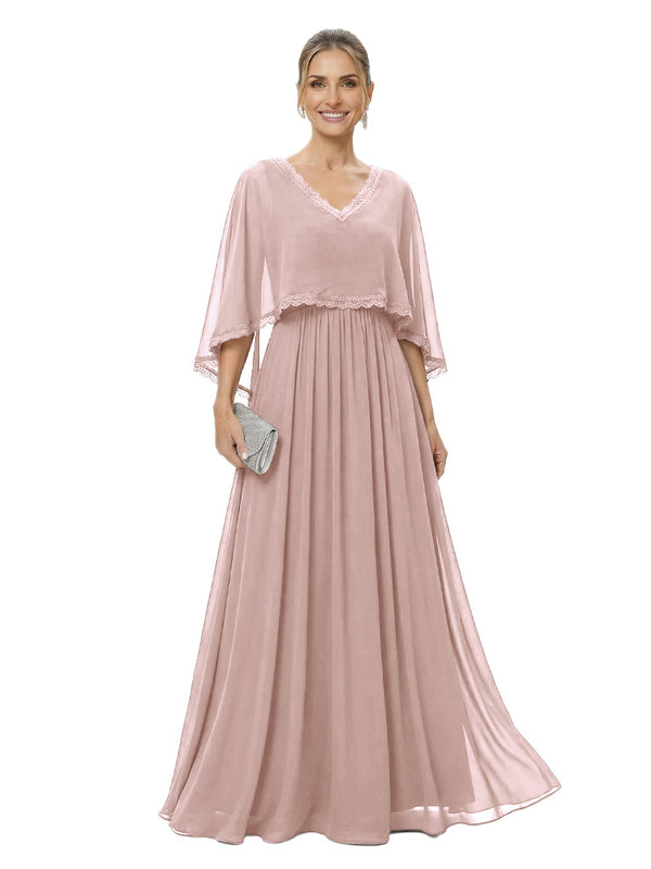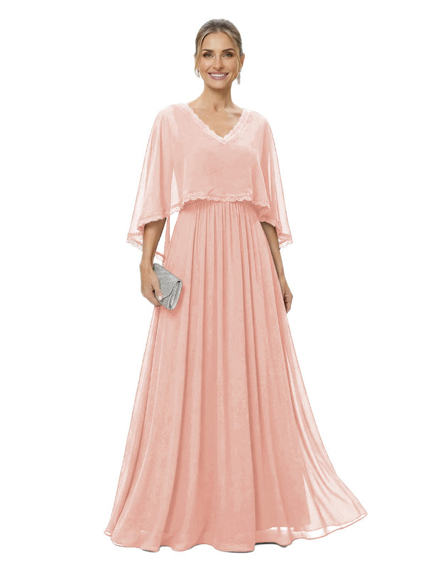 Elegant Mother Of The Bride Dresses V-Neck 3/4 Sleeves A-Line Formal Wedding Event Dress