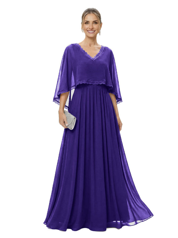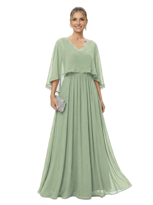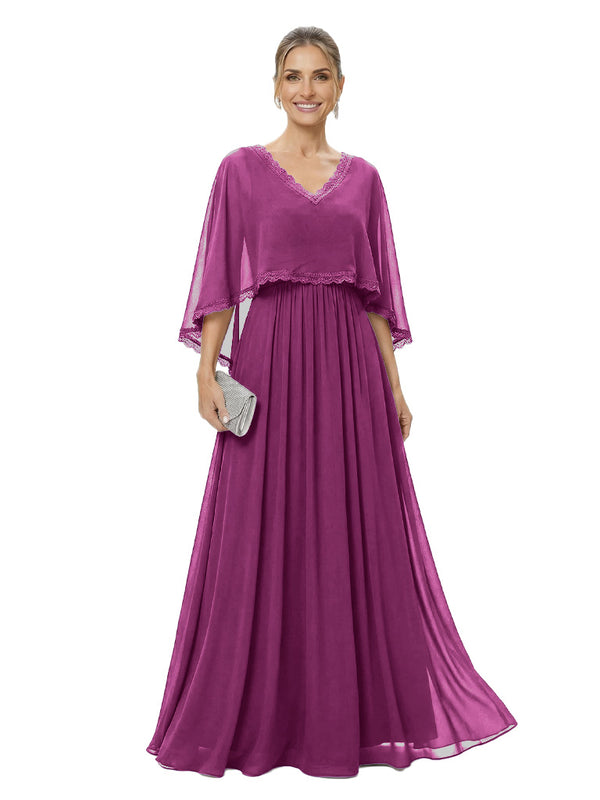 Elegant Mother Of The Bride Dresses V-Neck 3/4 Sleeves A-Line Formal Wedding Event Dress $149.99