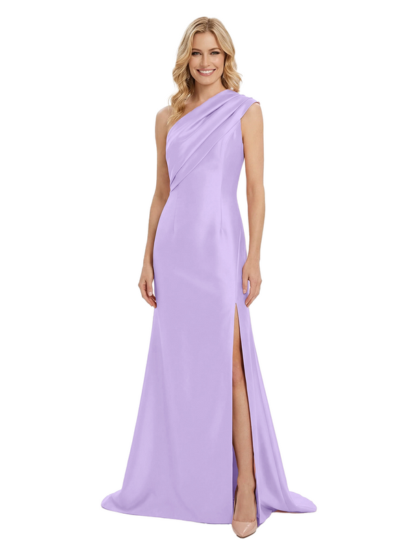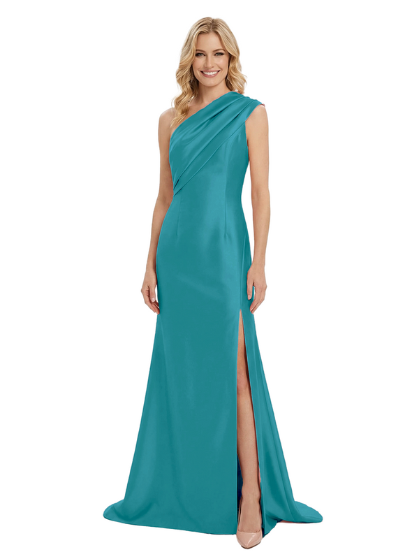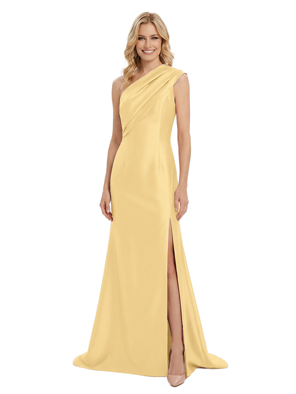 Mother of The Groom One Shoulder Sleeveless Ruffled Satin Side Slit Mermaid Floor Length Formal Bride Mother Wear