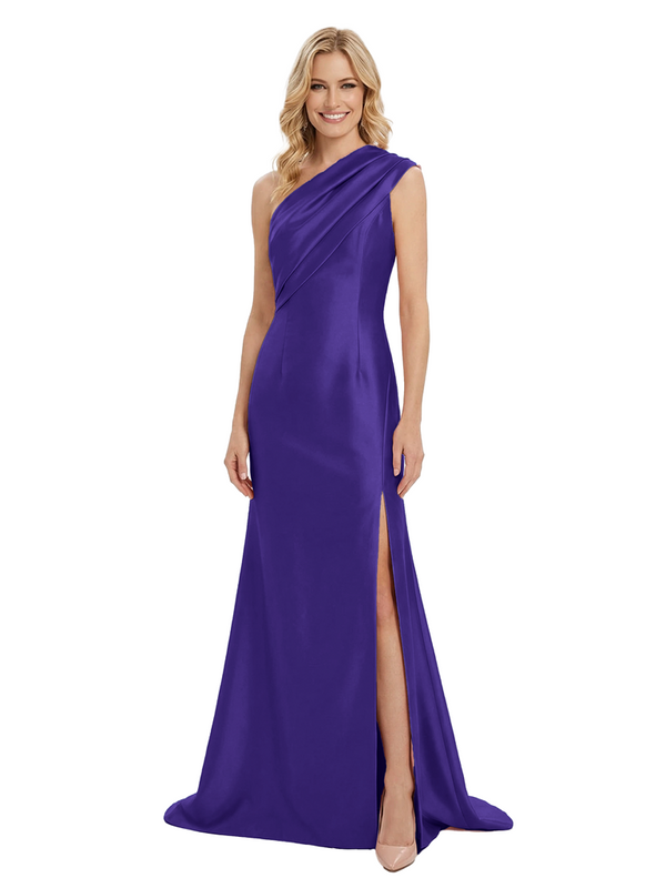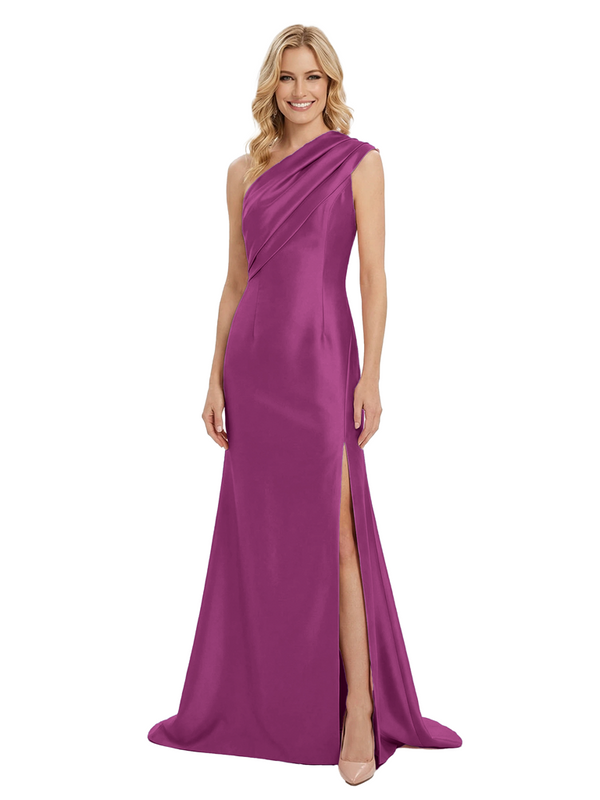 Mother of The Groom One Shoulder Sleeveless Ruffled Satin Side Slit Mermaid Floor Length Formal Bride Mother Wear $149.99