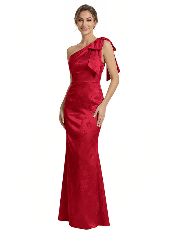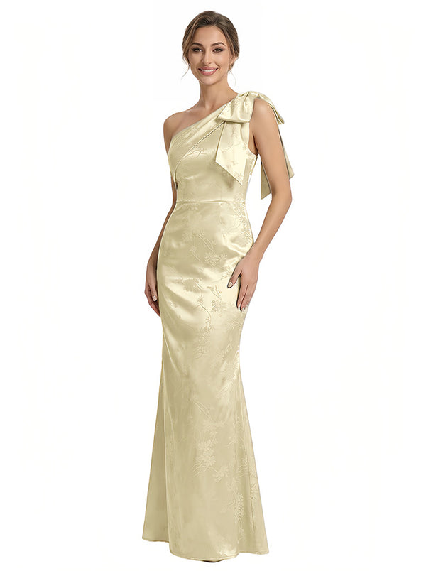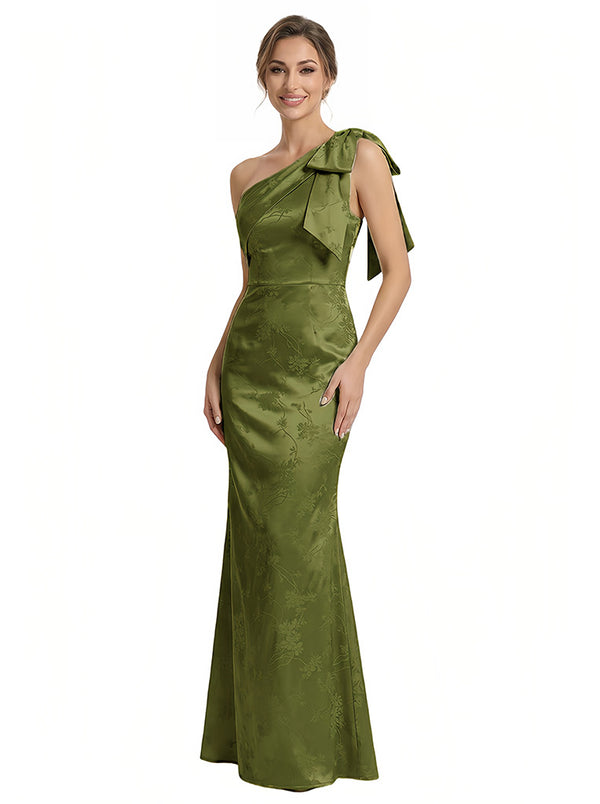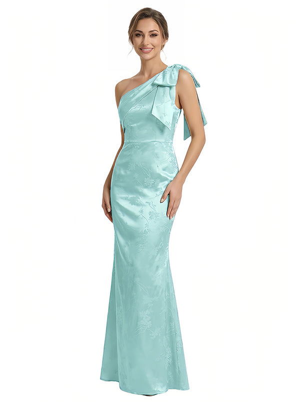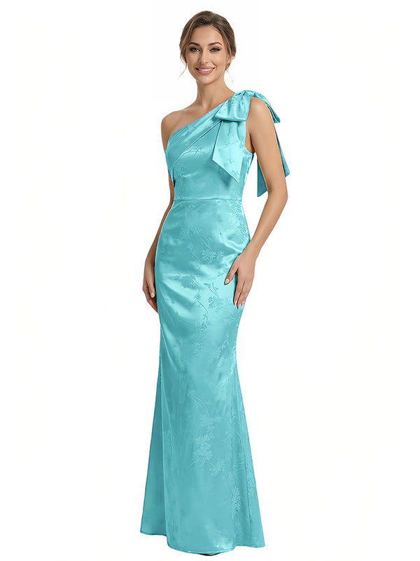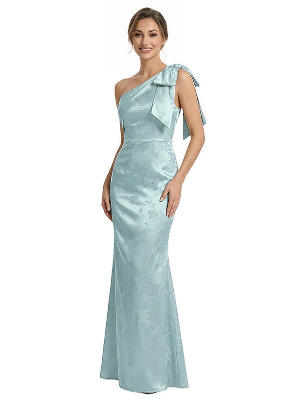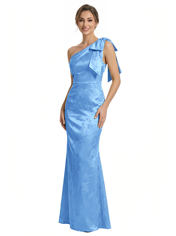 Elegant Jacquard Satin One Shoulder Mermaid Long Formal Evening Dresses