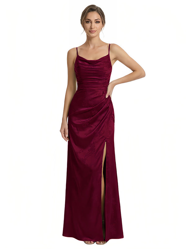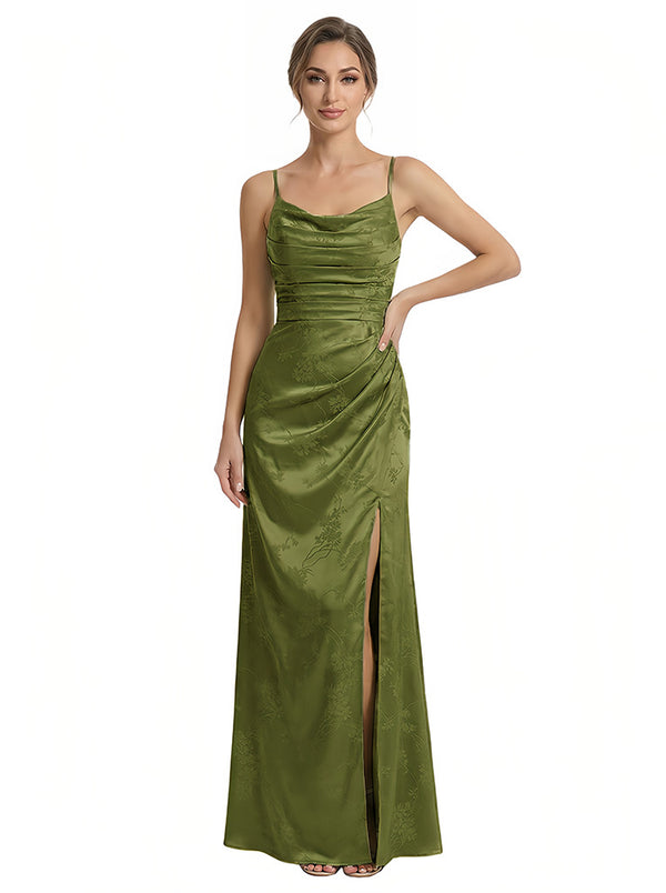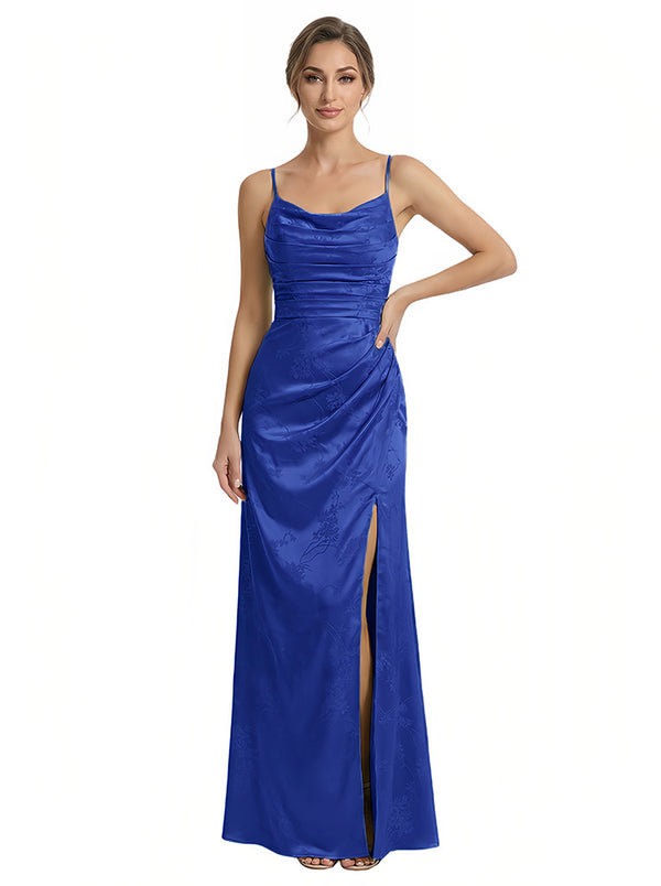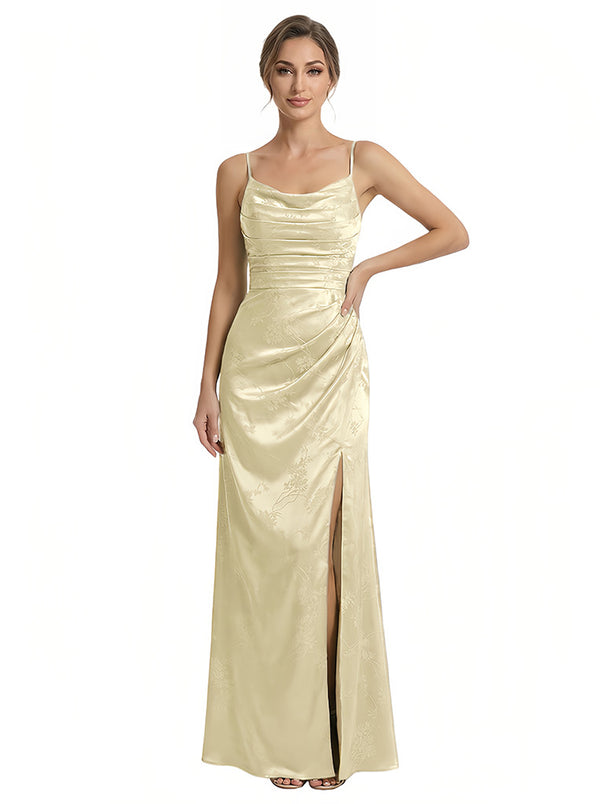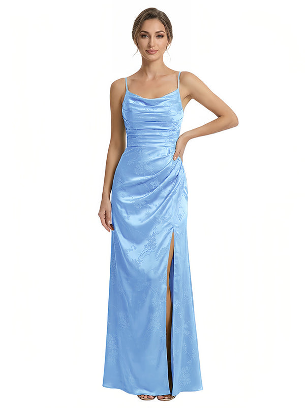 Elegant Jacquard Satin Spaghetti Straps Mermaid Long Formal Evening Dresses