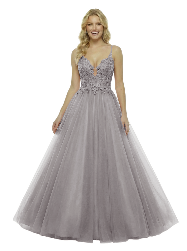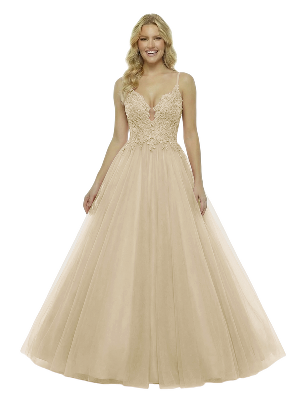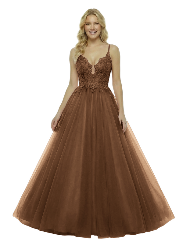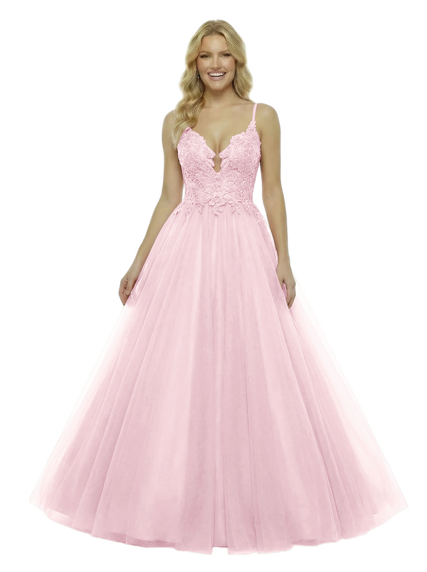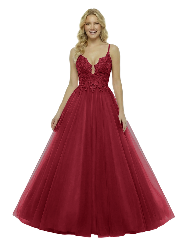 ChicSew Elegant V-Neck Ball Gown Prom Dress Lace Tulle Fabric A-Line Long Formal Evening Gown