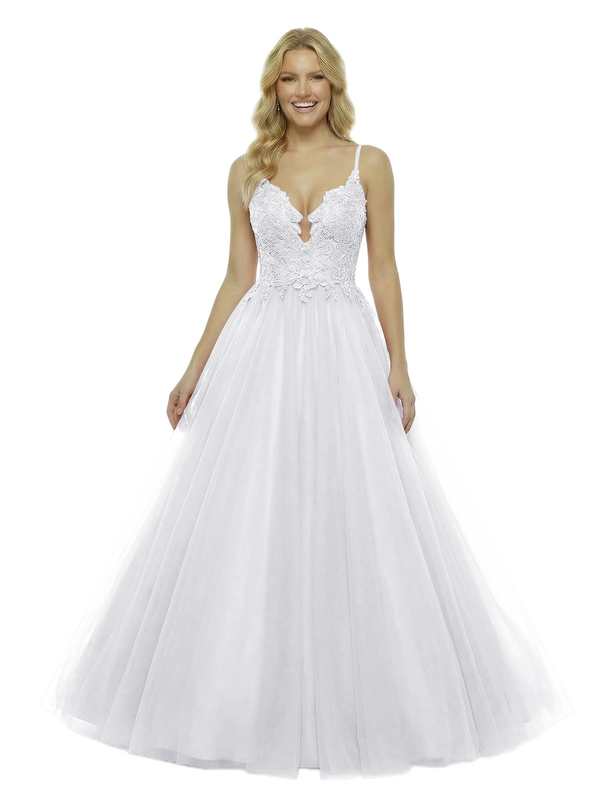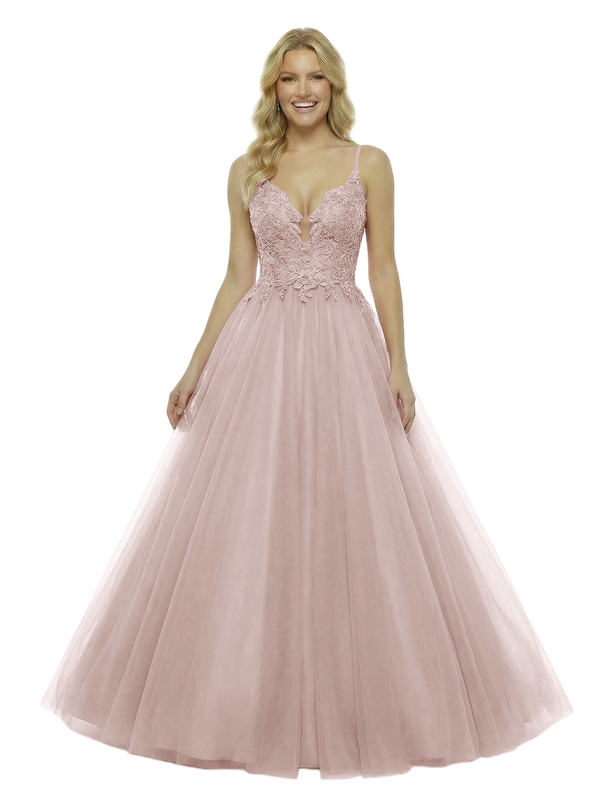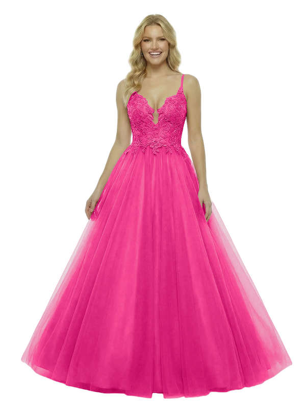 ChicSew Elegant V-Neck Ball Gown Prom Dress Lace Tulle Fabric A-Line Long Formal Evening Gown $199.99