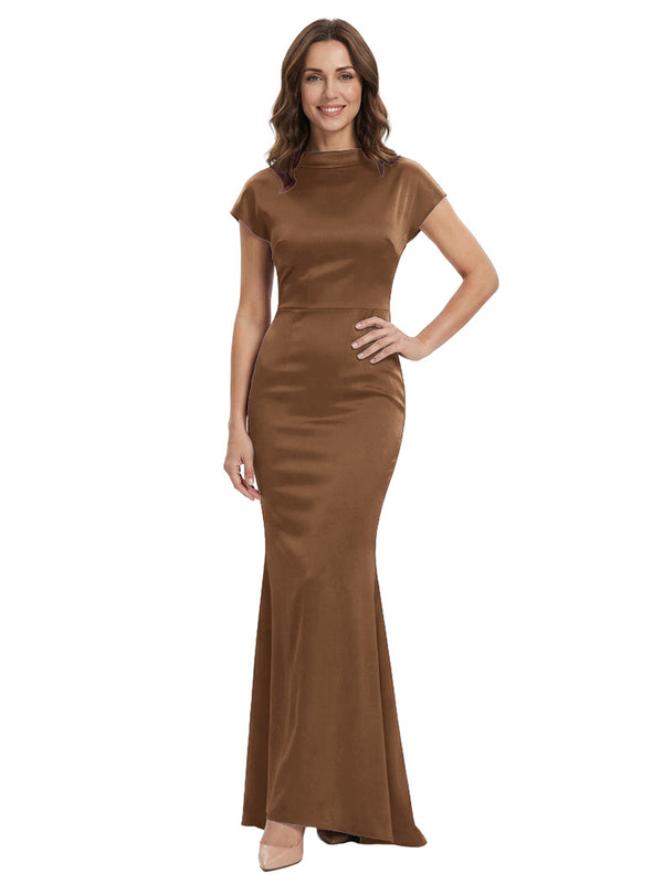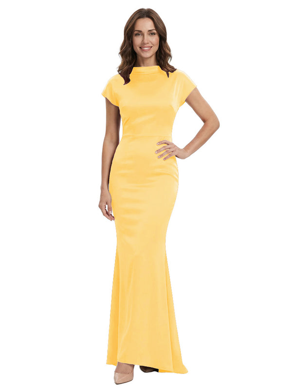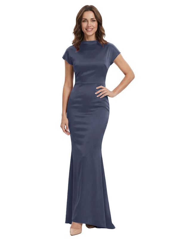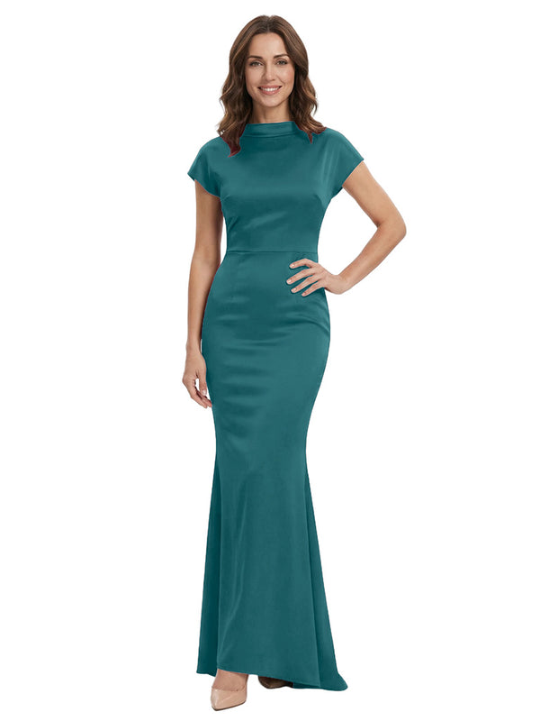 Elegant High Neck Cap Sleeves Satin Mother Of The Bride Mermaid Evening Gown $149.99