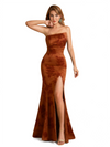 Elegant Strapless Side Slit Mermaid Long Satin Floral Formal Dresses For Women