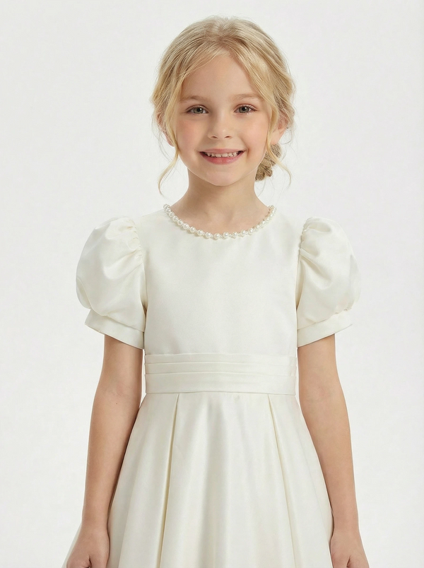 Satin Tulle Girls Princess Dress Strap Bow Sash A-Line Wedding Guest Gowns Bow Knot