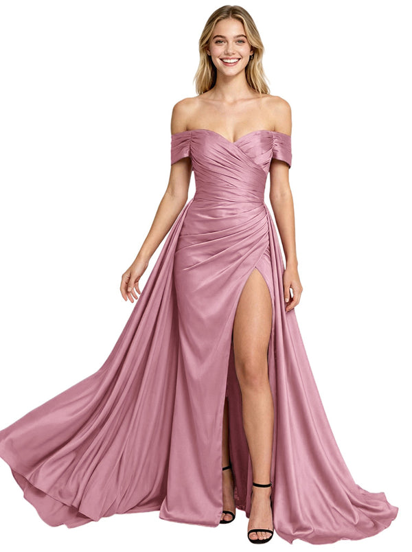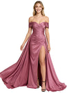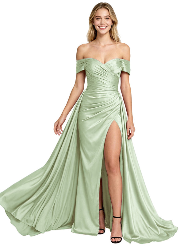 Classy Mermaid Off Shoulder Satin Long Party Prom Dresses