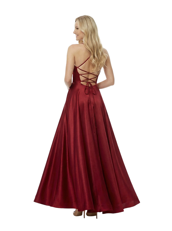 Elegant Spaghetti Straps Ruched High-Low Asymmetric Satin Prom Gown $159.99