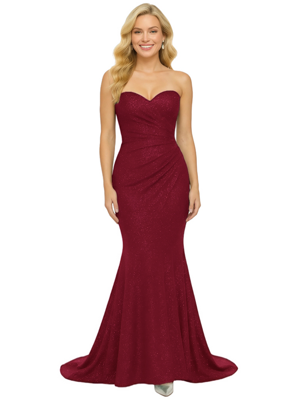 Sparkly Sweetheart Glitter Jersey Mermaid Ruched Evening Prom Dresses