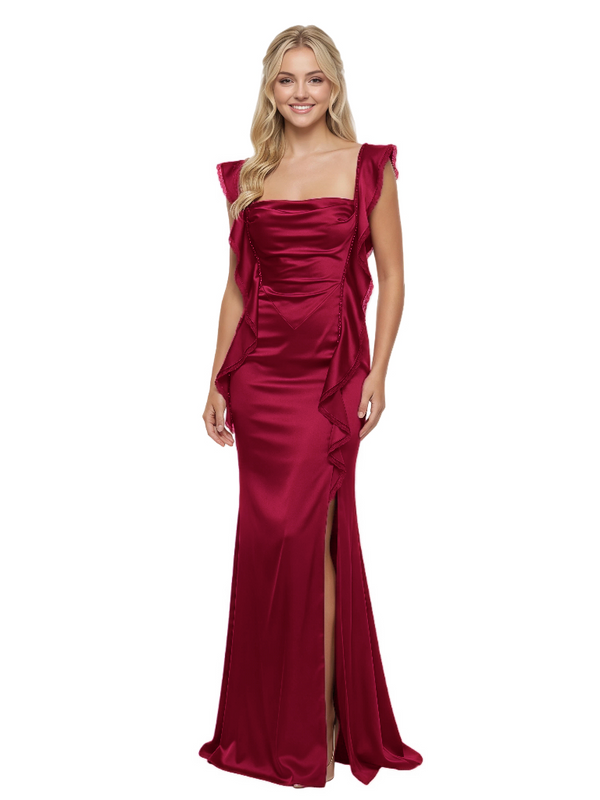 Sweet Satin Spaghetti Straps Square Ruffle Mermaid Long Party Prom Dresses