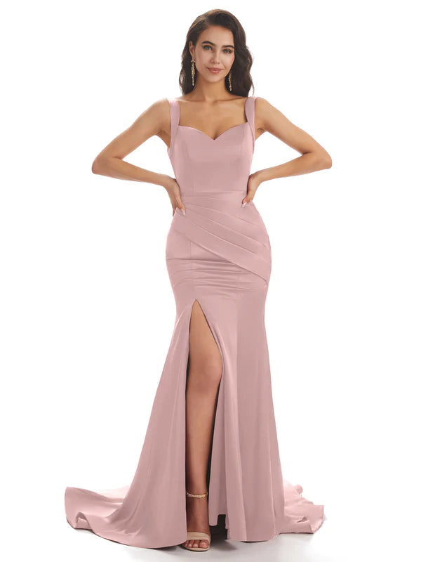Mismatched Vintage-Mauve Sexy Side Slit Mermaid Soft Satin Long Bridesmaid Dresses Online $118.99