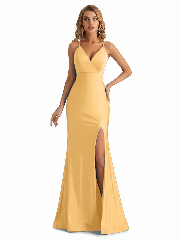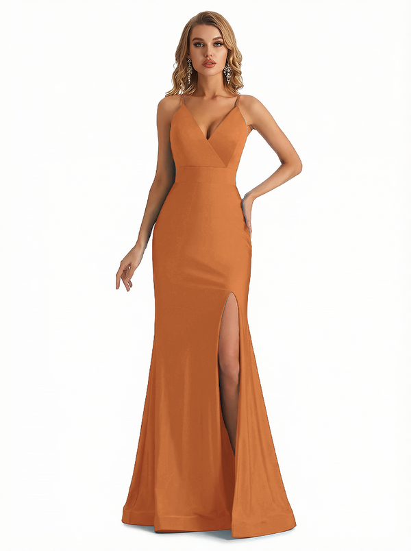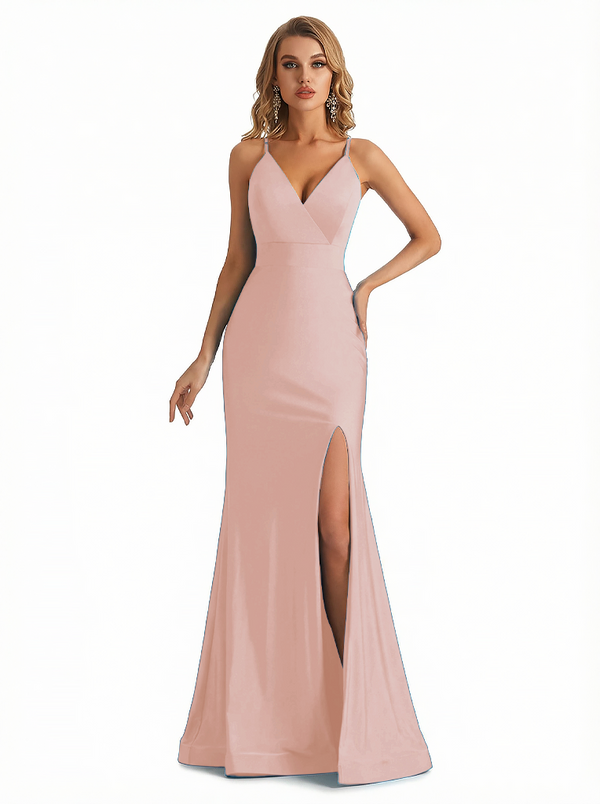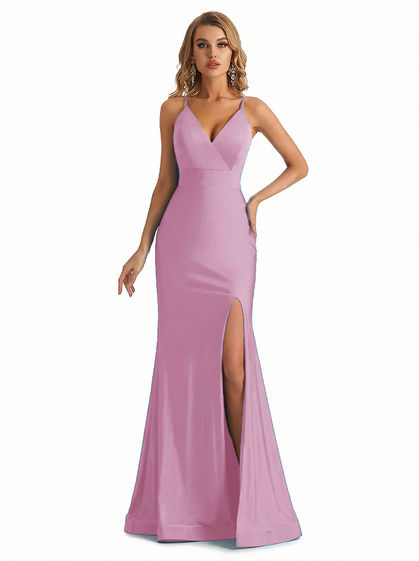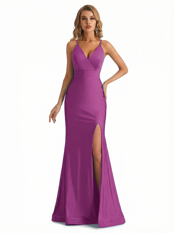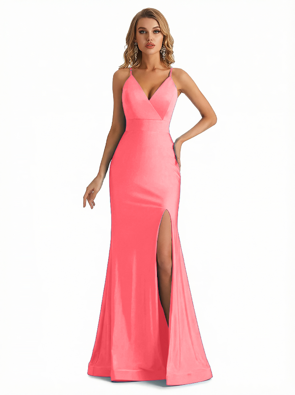 Trendy V-neck Side Slit Jersey Mermaid Floor Length Evening Formal Dresses