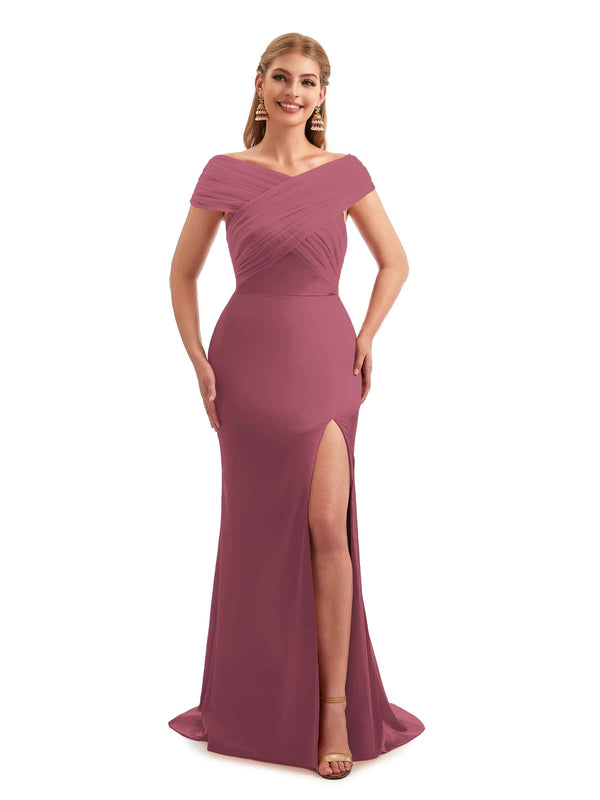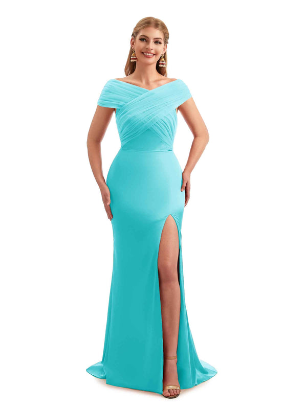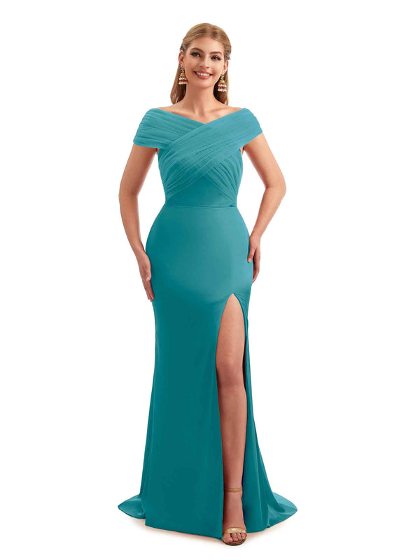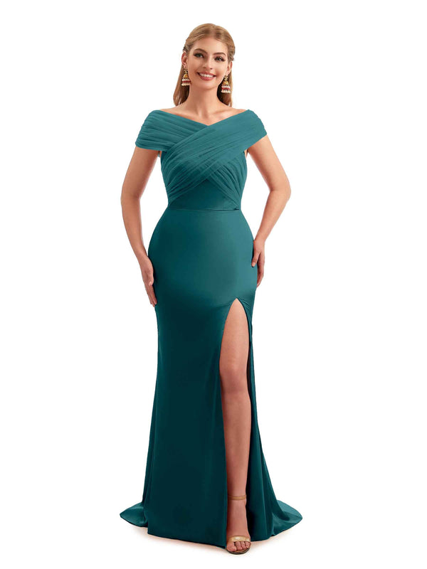 Modern Summer Off The Shoulder Satin Bridesmaid Dresses