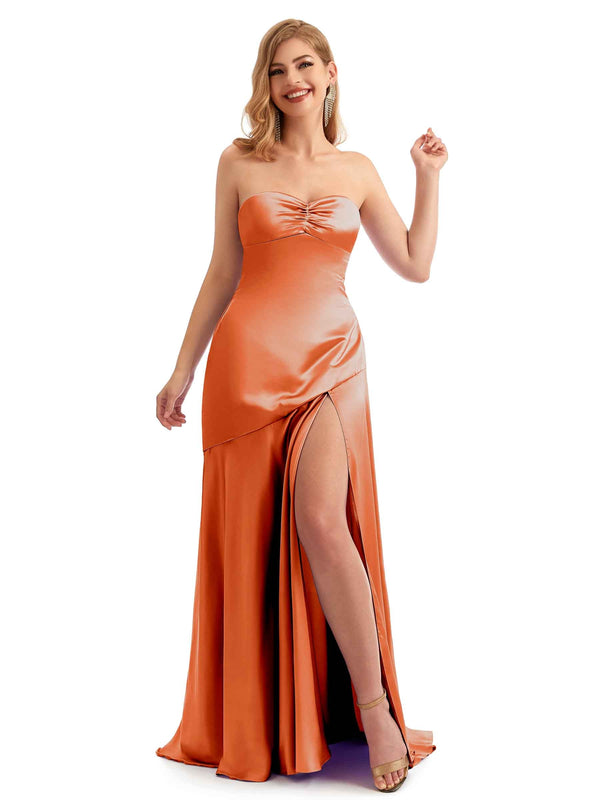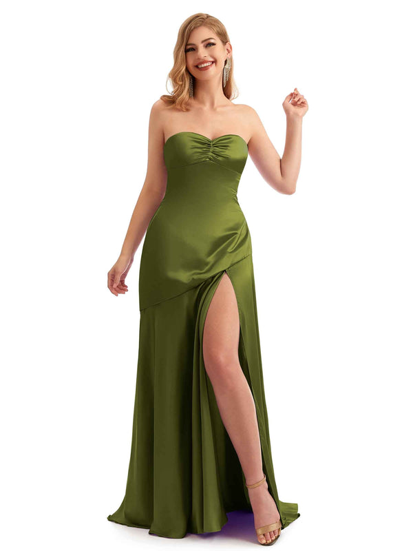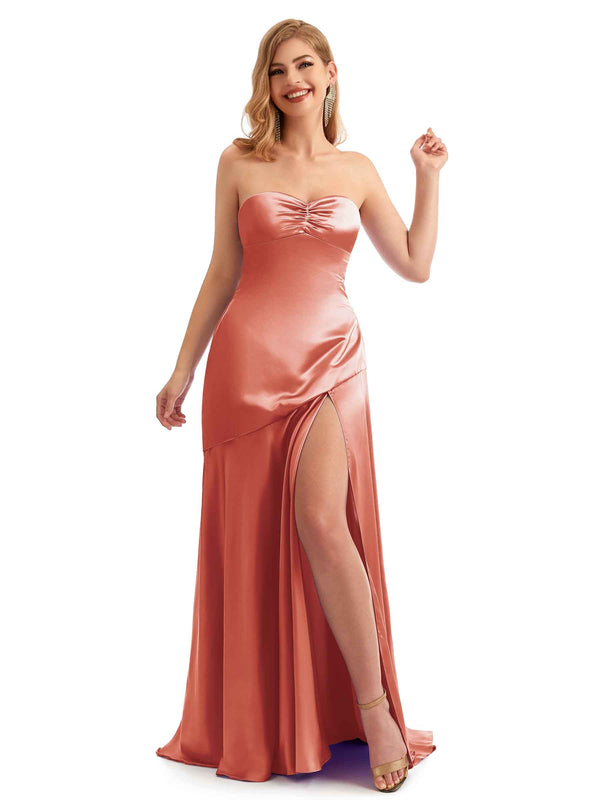 Summer Simple Sweetheart Satin Long Bridesmaid Dresses