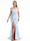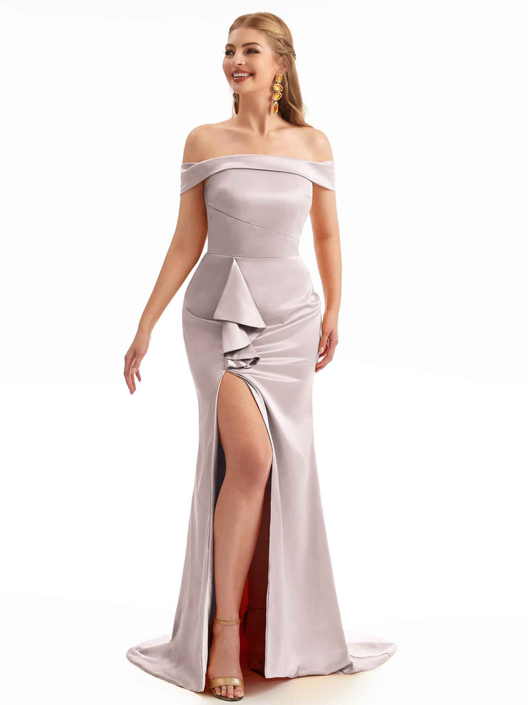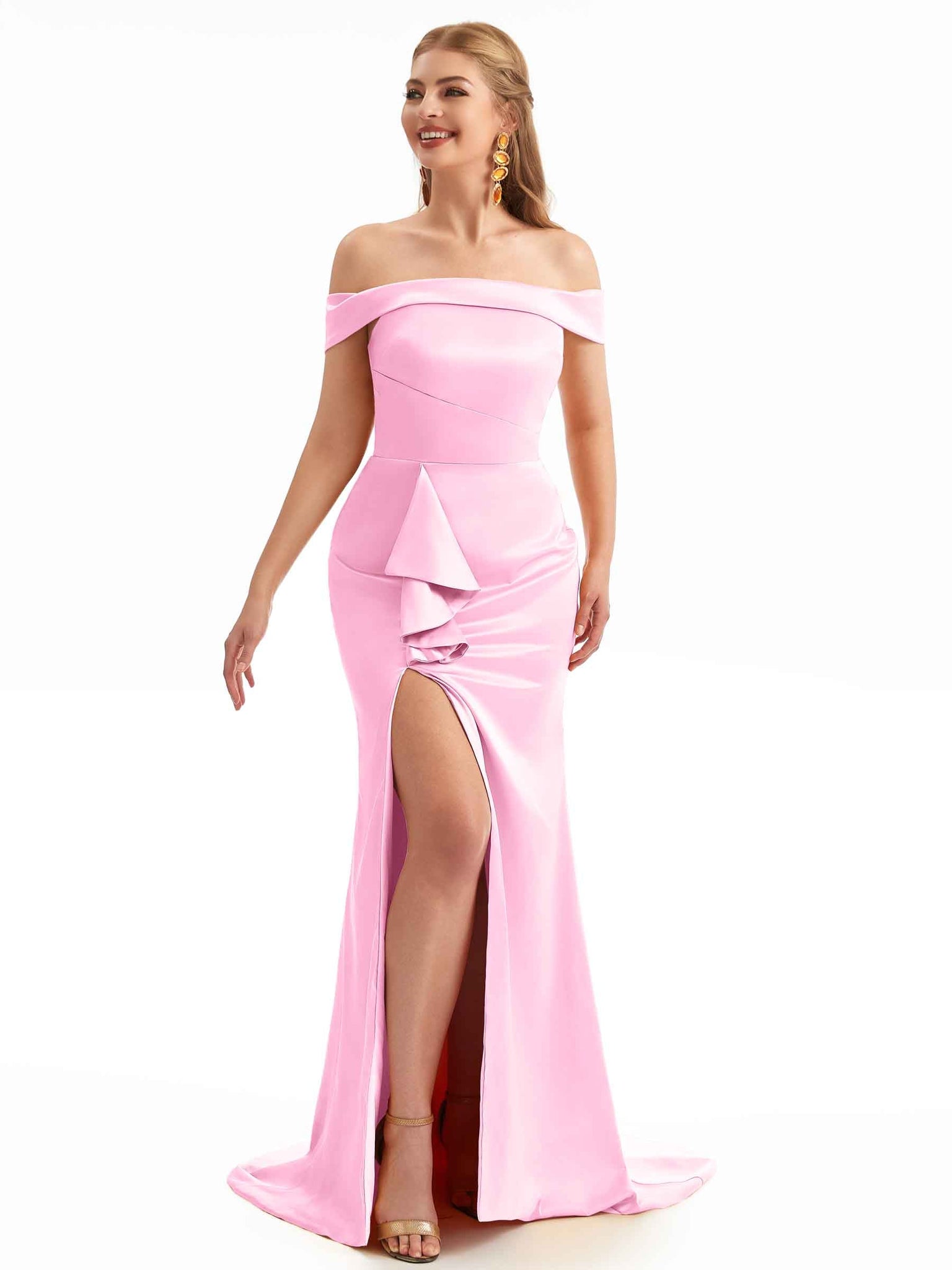 Off The Shoulder Black Satin Silky Bridesmaid Dresses