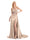 Elegant One Shoulder Side Slit Soft Satin Long Wedding Guest Dresses