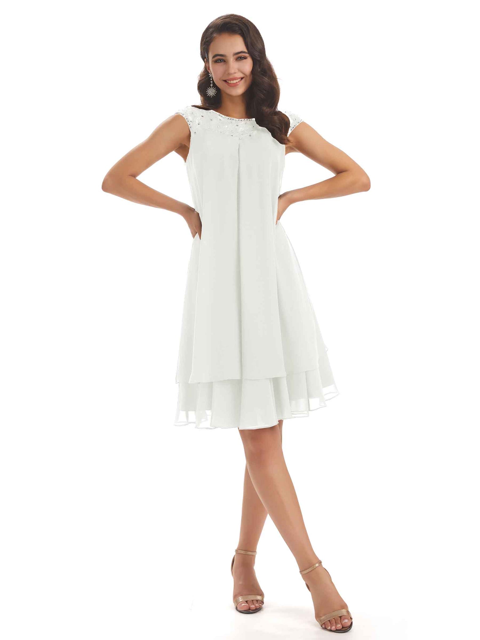 Elegant Chiffon Lace Cap Sleeve Knee Length Mother Of The Bride DressesElegant Chiffon Lace Cap Sleeve Knee Length Mother Of The Bride Dresses