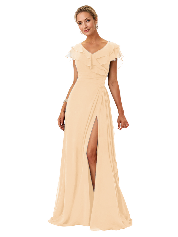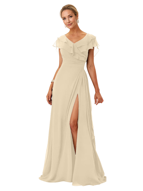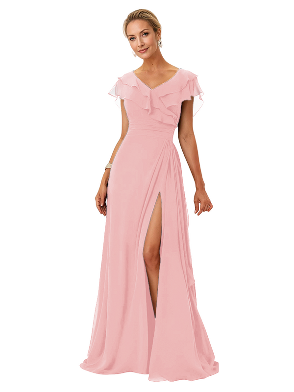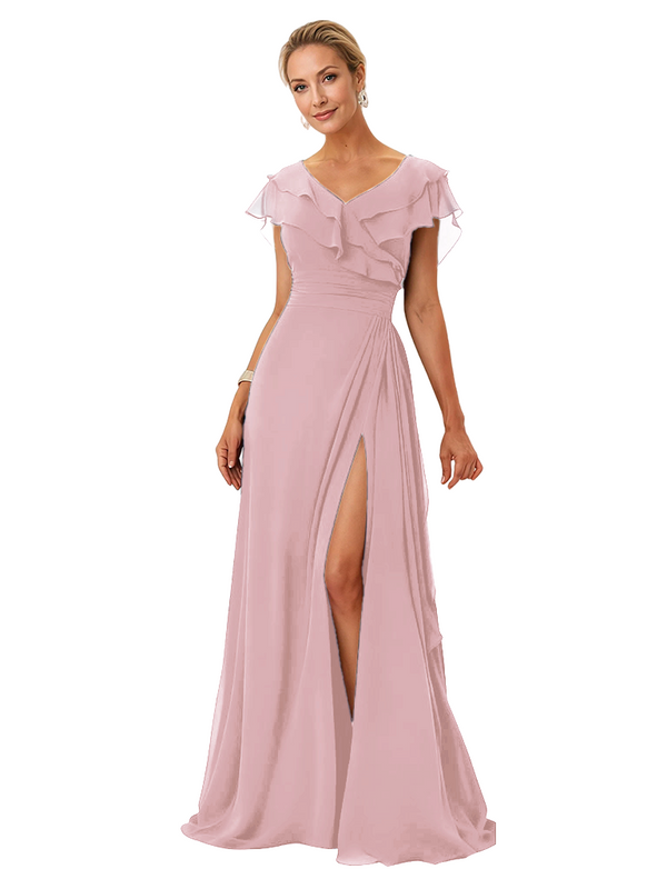 Elegant Side Slit Chiffon Long Mother of The Bride DressesElegant Side Slit Chiffon Long Mother of The Bride Dresses
