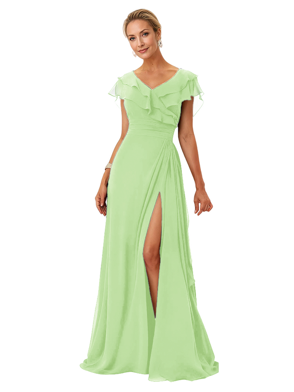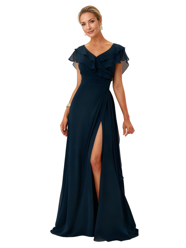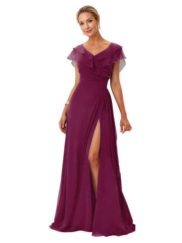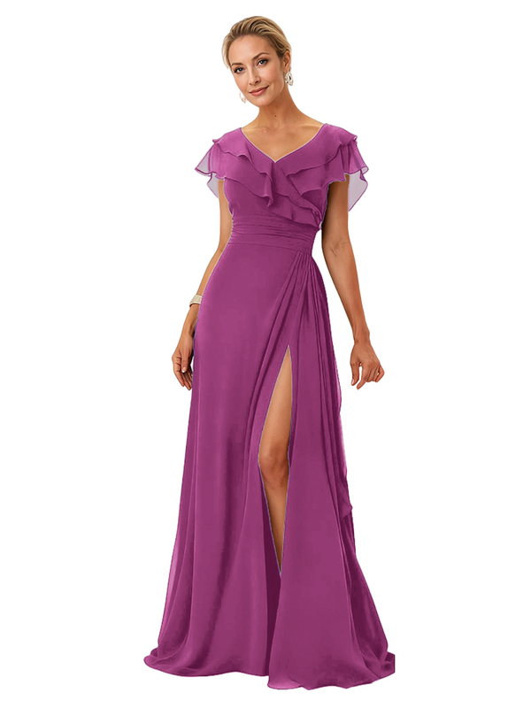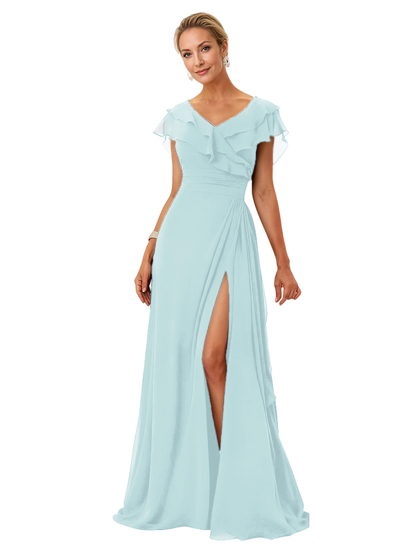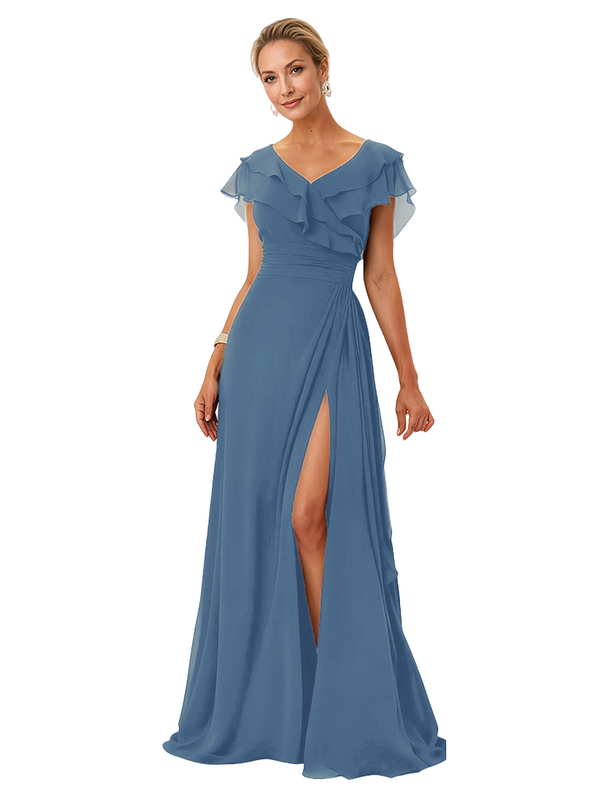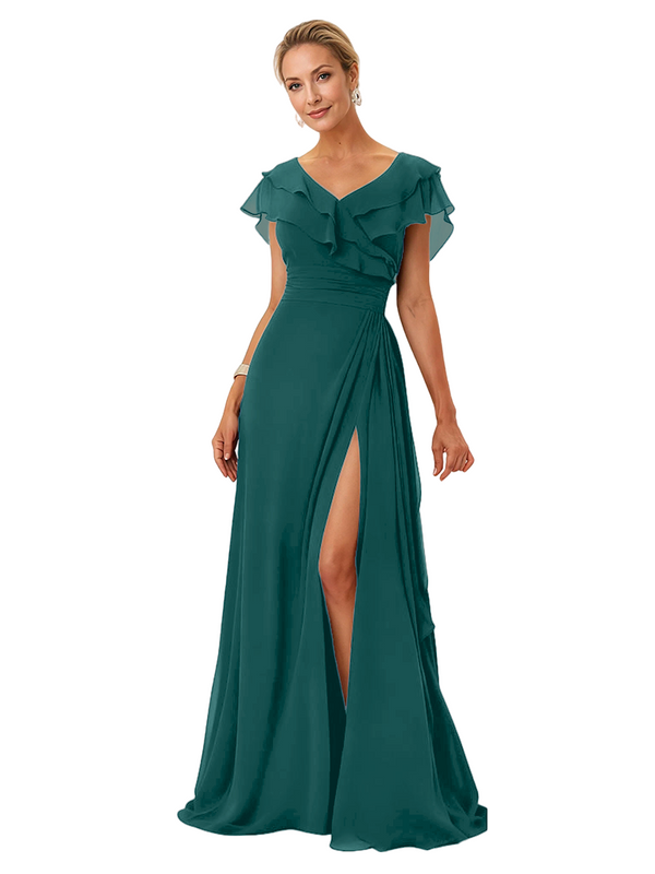 Elegant Side Slit Chiffon Long Mother of The Bride Dresses