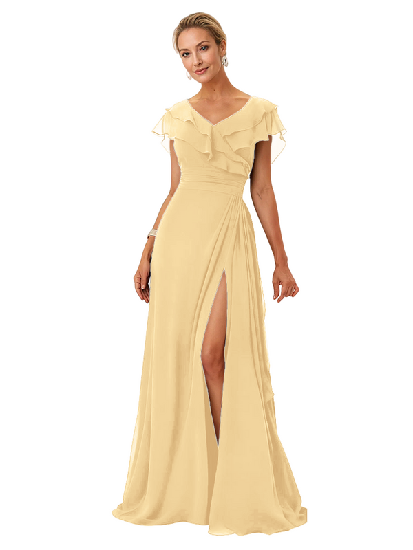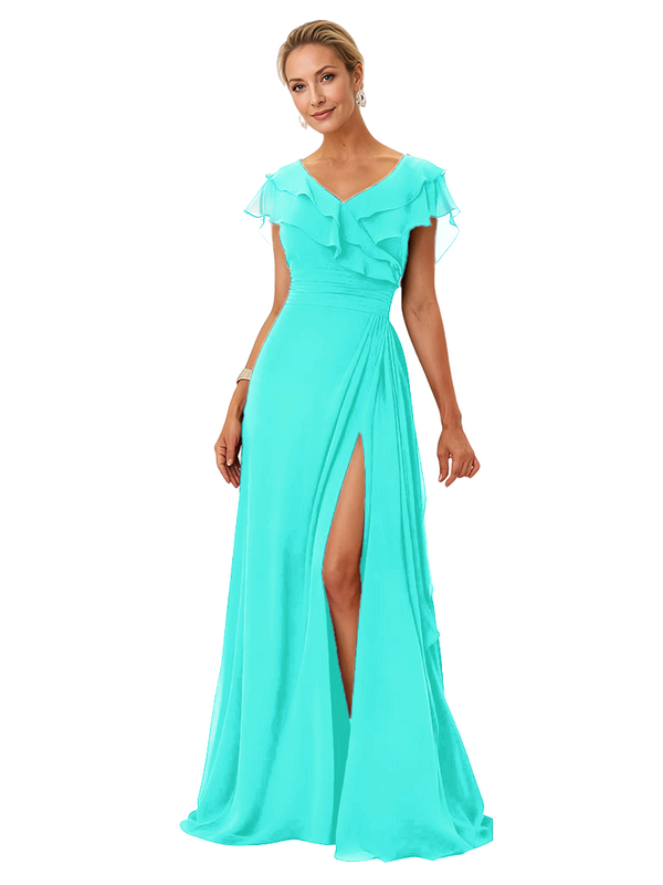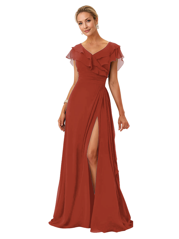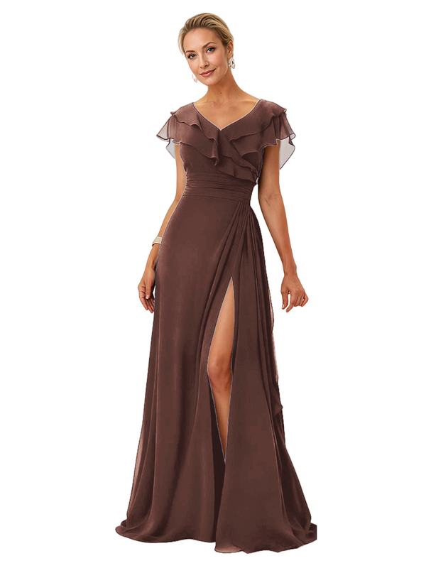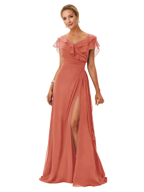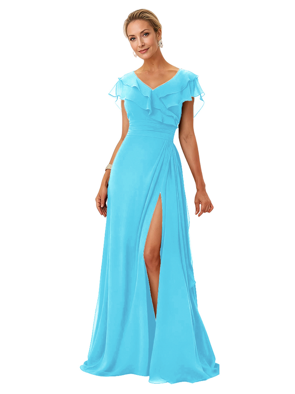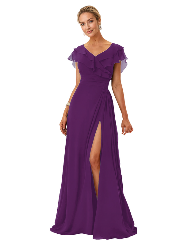 Elegant Side Slit Chiffon Long Mother of The Bride Dresses