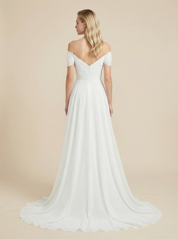 A-Line Off Shoulder Chiffon Maxi Long Wedding Dresses With Train