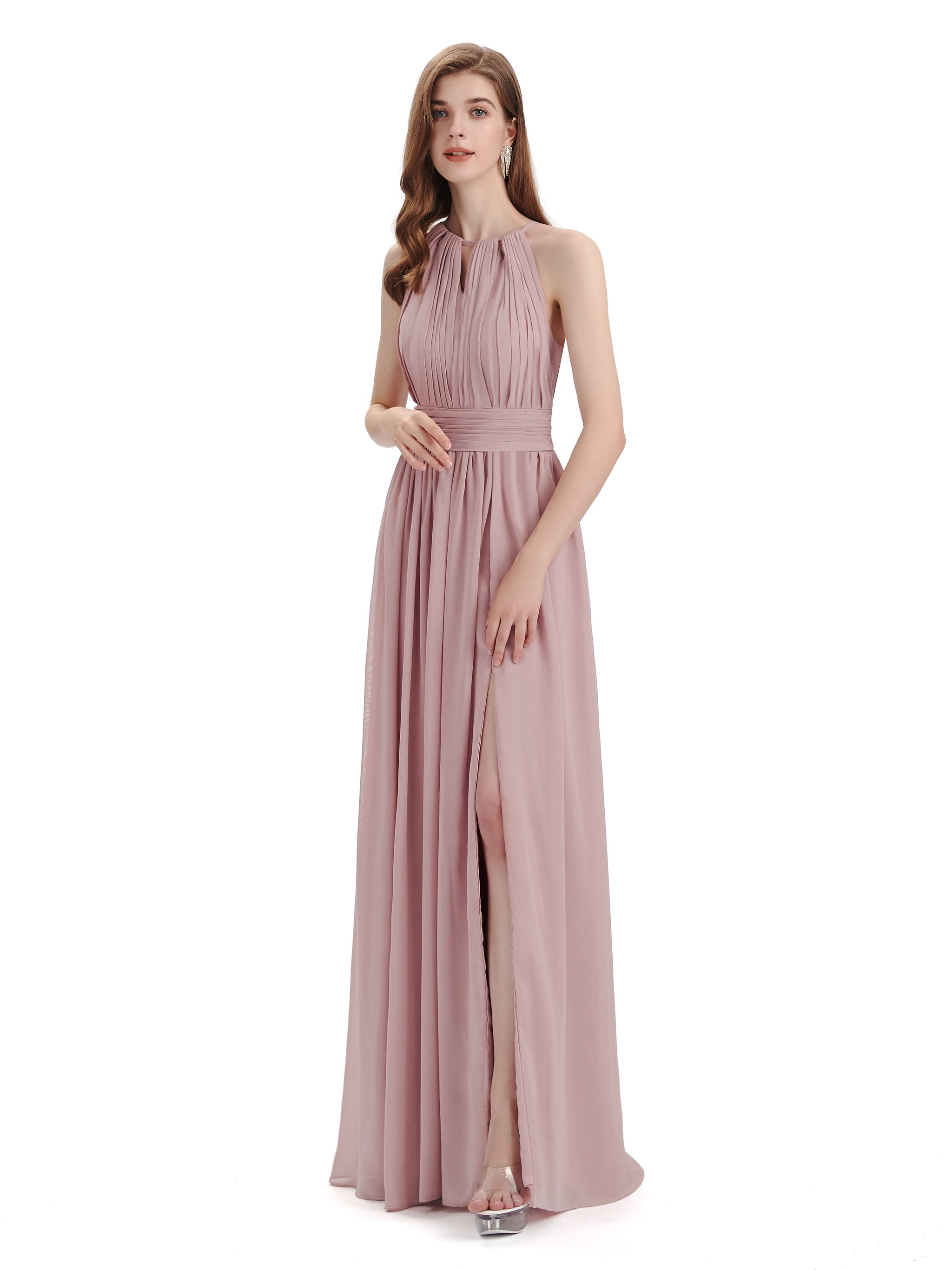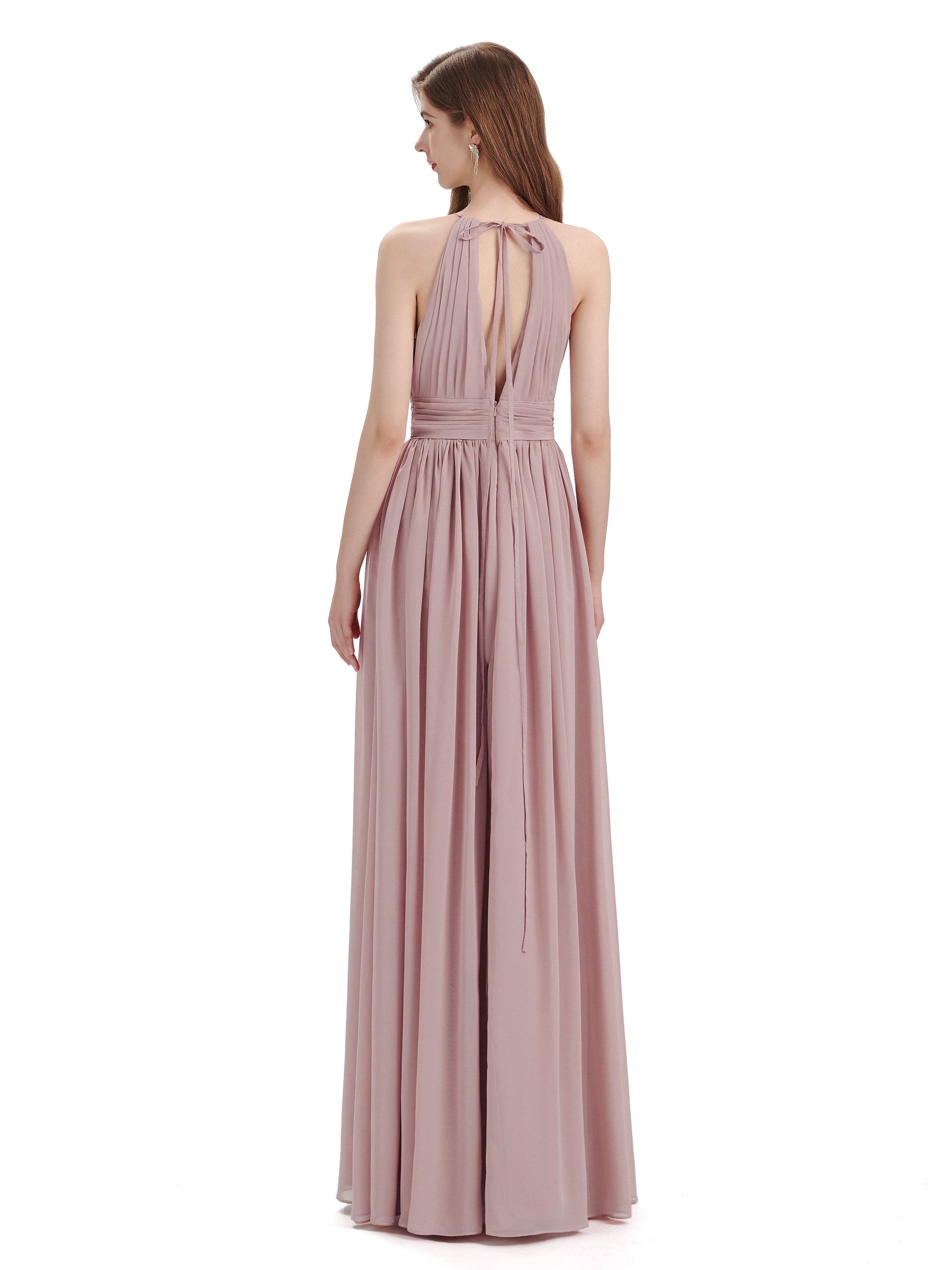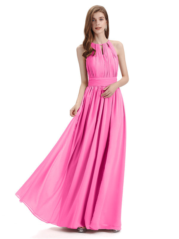 A-Line Halter Chiffon Pleats Floor Length Bridesmaid Dresses
