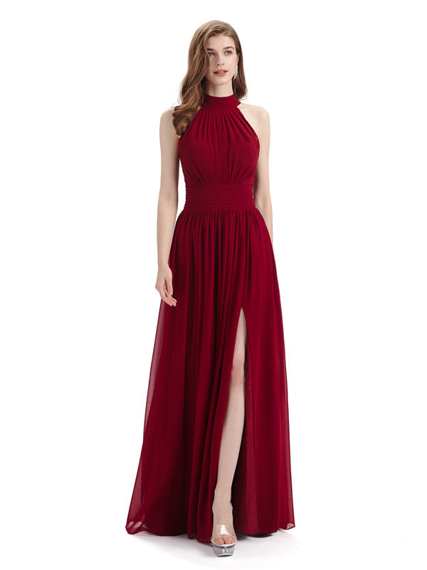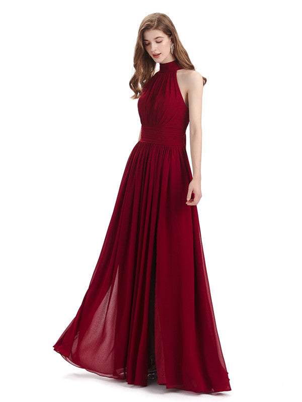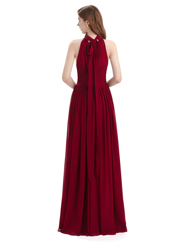 A-line Halter Elegant Chiffon Long Bridesmaid Dresses