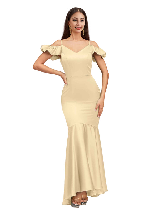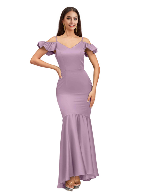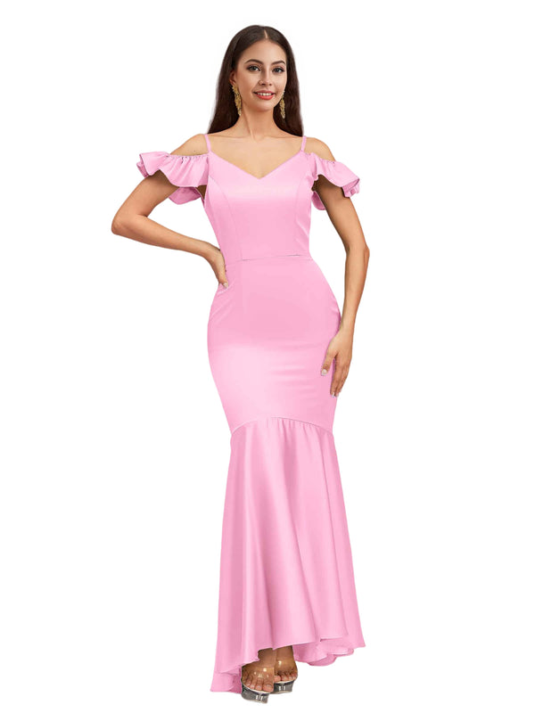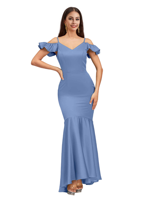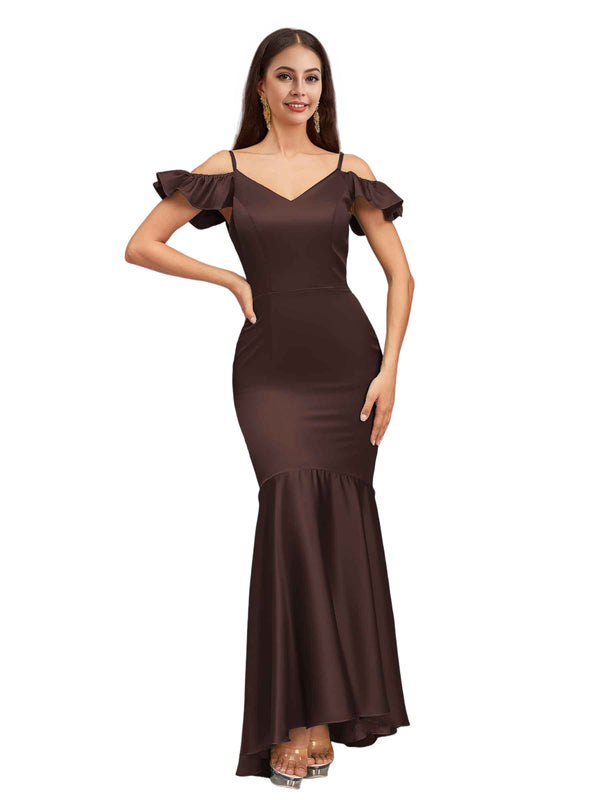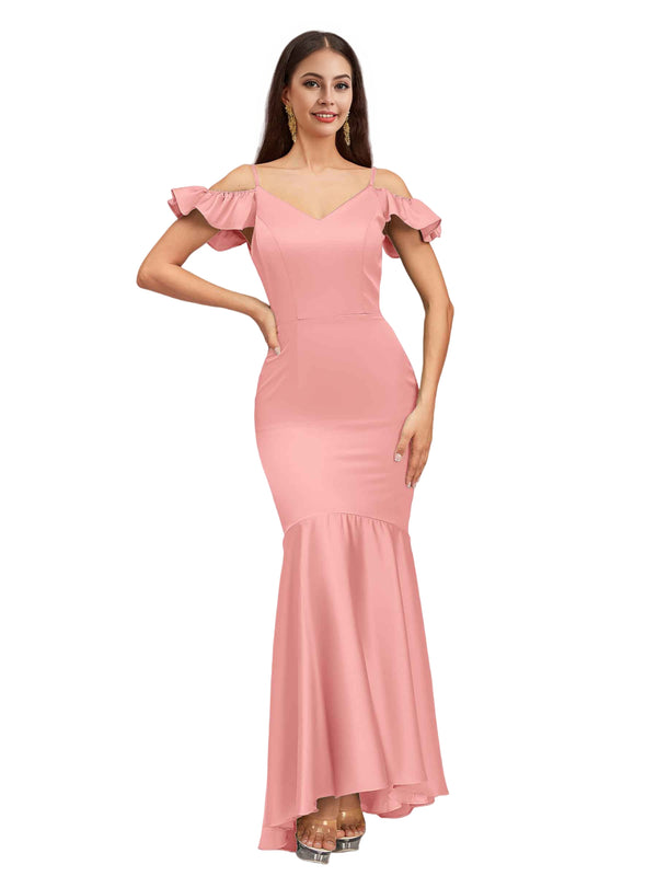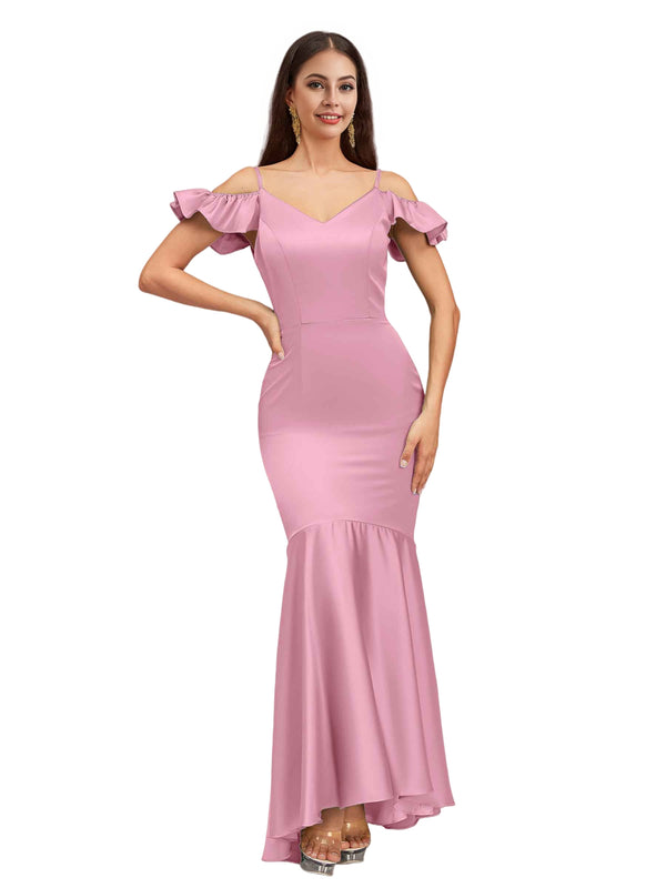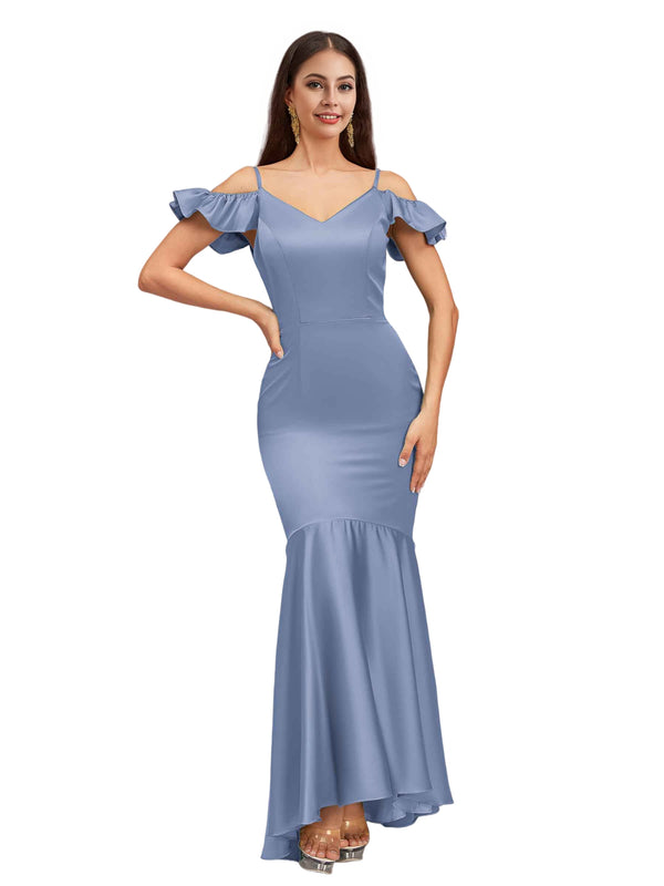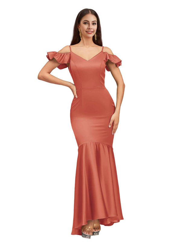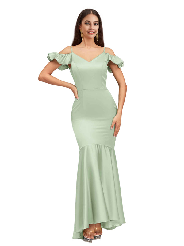 Sexy Mermaid Cold Shoulder Soft Satin Beauty Long Bridesmaid Dresses