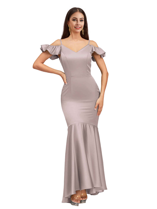 Sexy Mermaid Cold Shoulder Soft Satin Beauty Long Bridesmaid Dresses $108.99