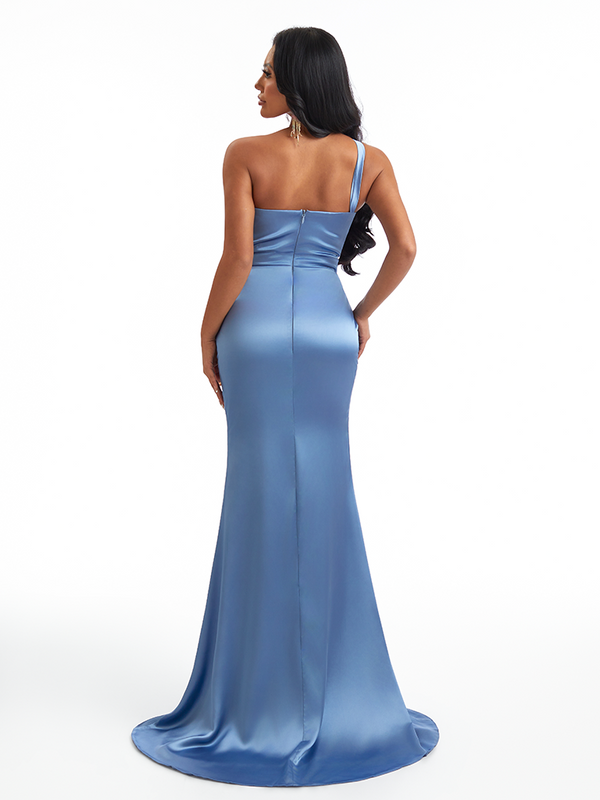 Sexy Mermaid One Shoulder Side Slit Soft Satin Long Bridesmaid Dresses Online