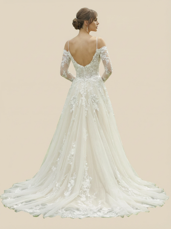 A-Line Long Sleeves Lace Maxi Long Wedding Dresses With Train $424.99