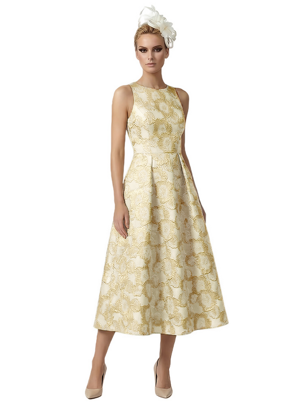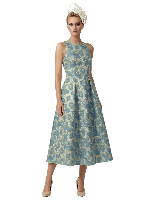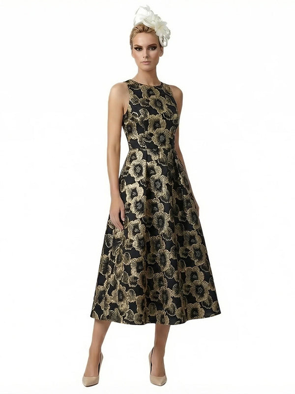 ChicSew Elegant Floral Jacquard Sleeveless A-Line Lace Midi Formal Evening Dresses