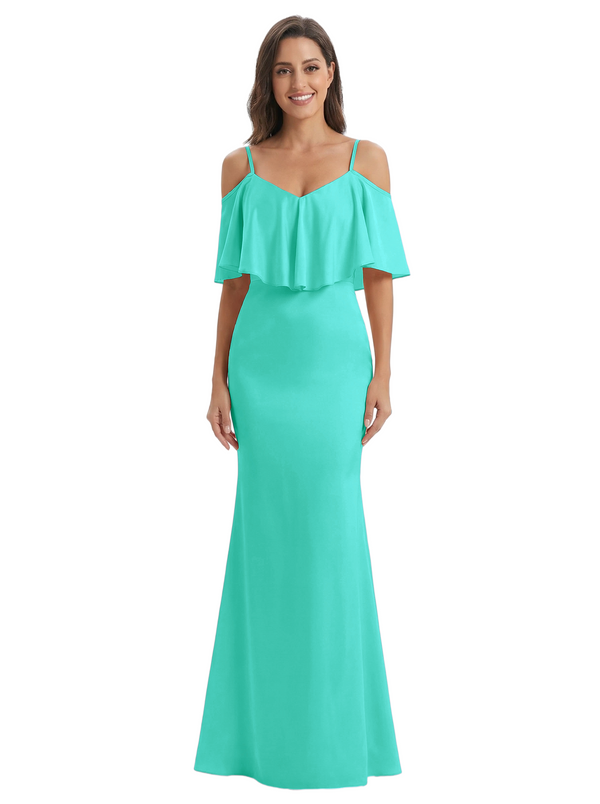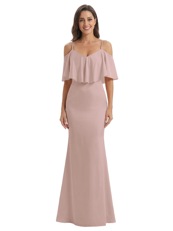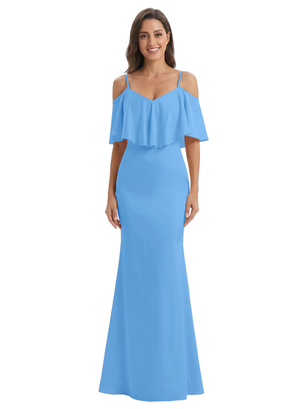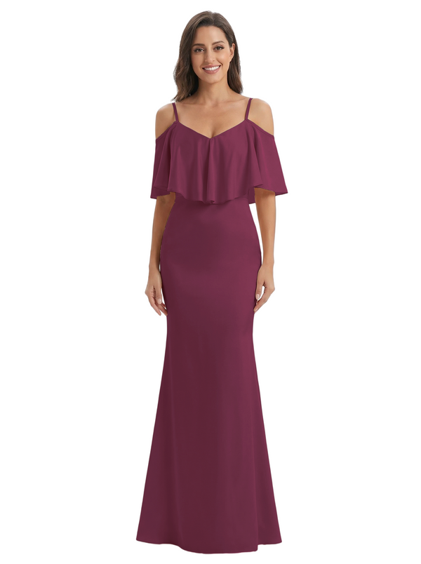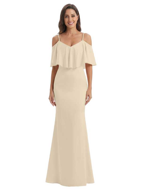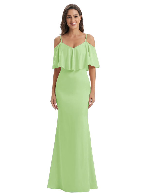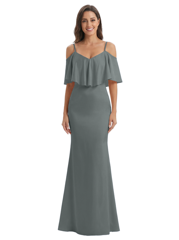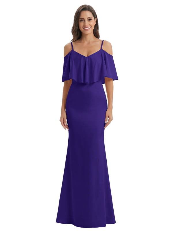 ChicSew Elegant V-neck Cold Shoulder Satin Mermaid Long Formal Dresses For Women