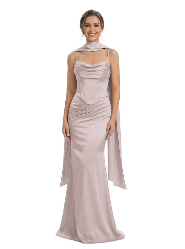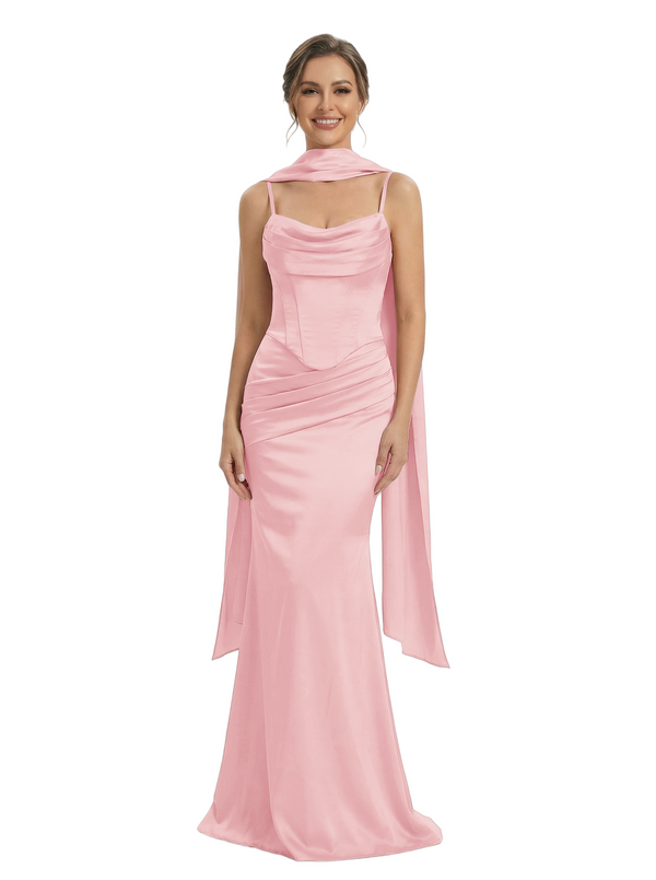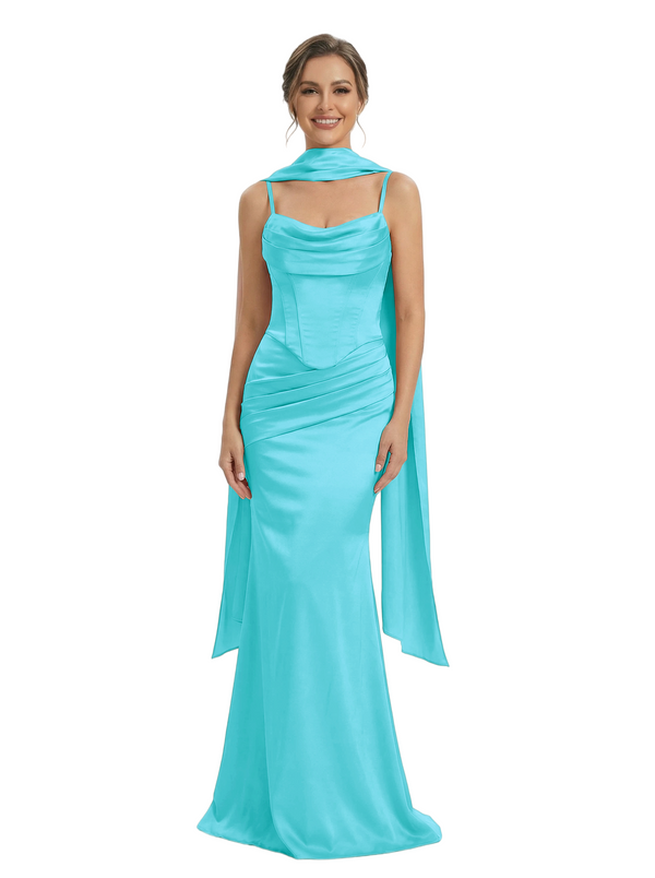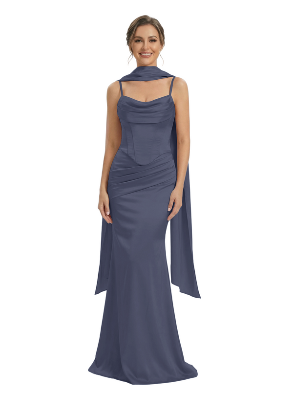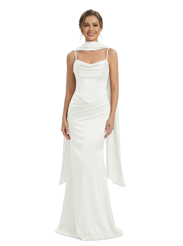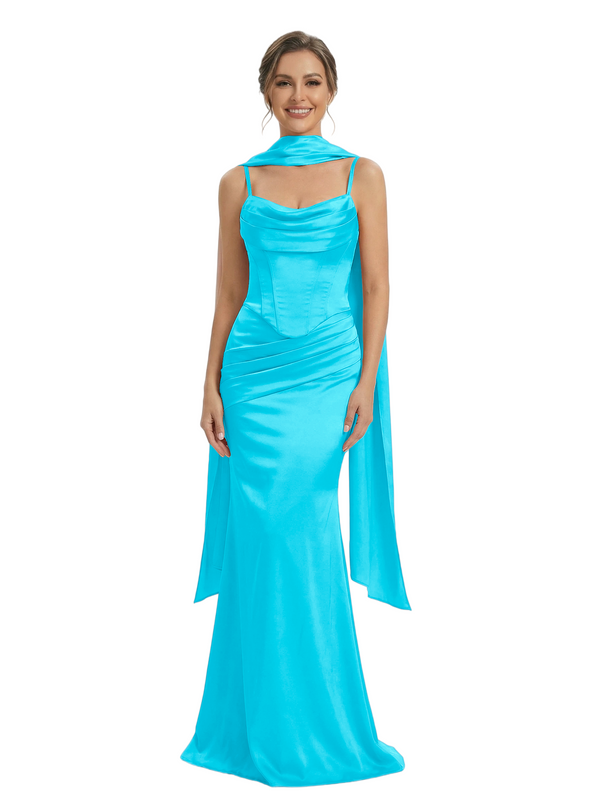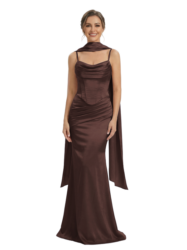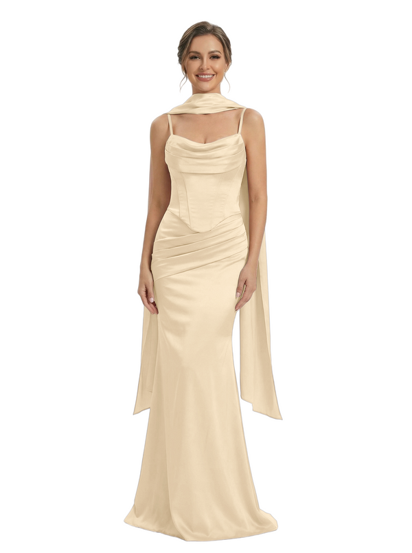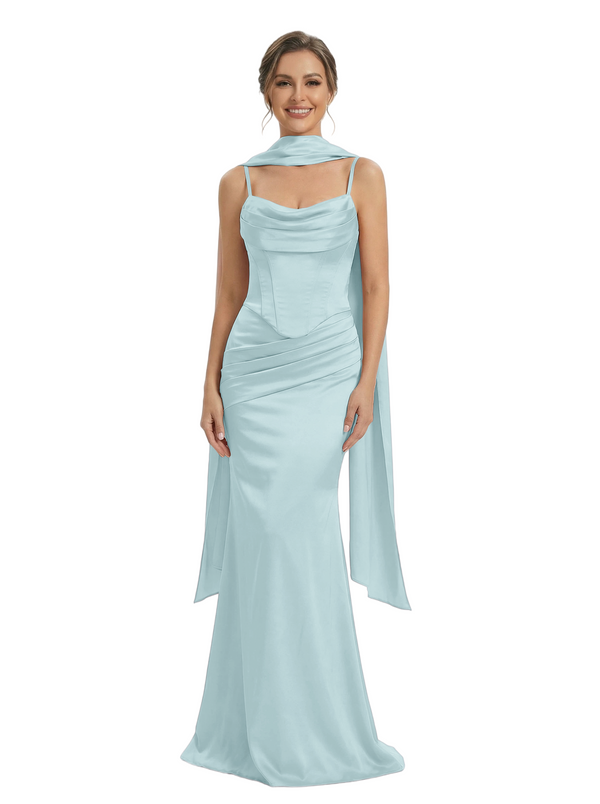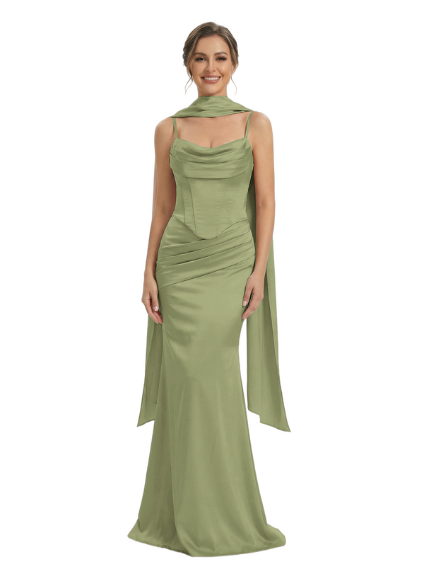 ChicSew Spaghetti Straps Corset Satin Ruched Mermaid Long Formal Evening Dresses