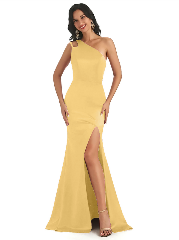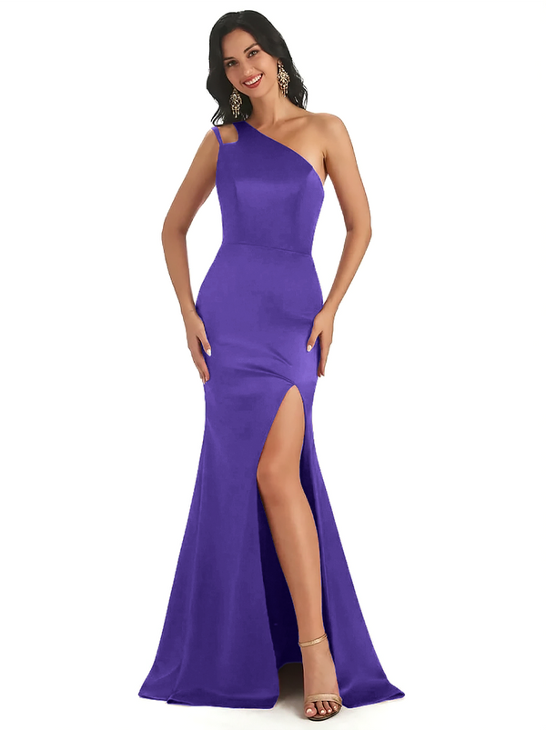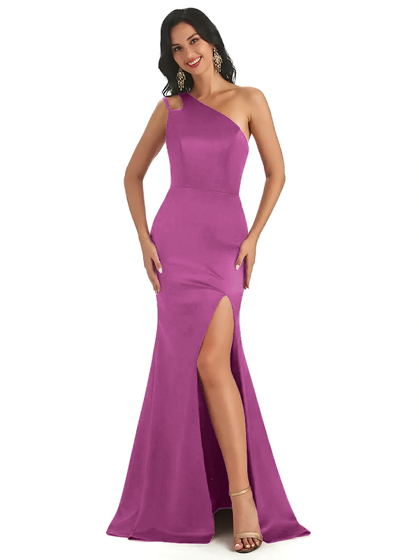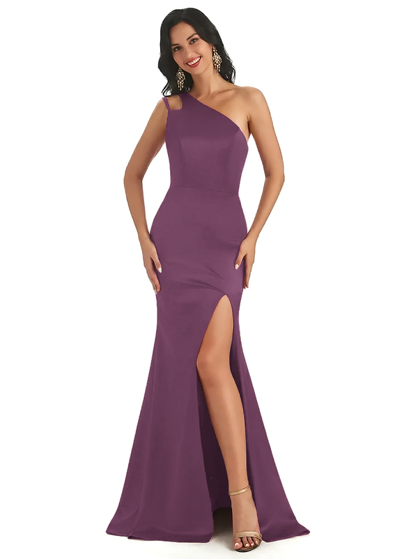 Sexy One Shoulder Silky Satin Mermaid Long Formal Dresses For Women Side Slit