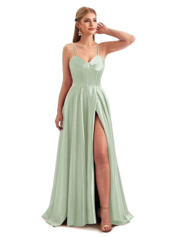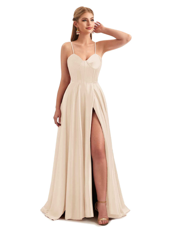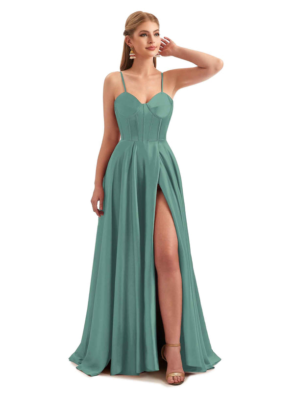 Winter A-Line Formal Satin Long Bridesmaid Dresses